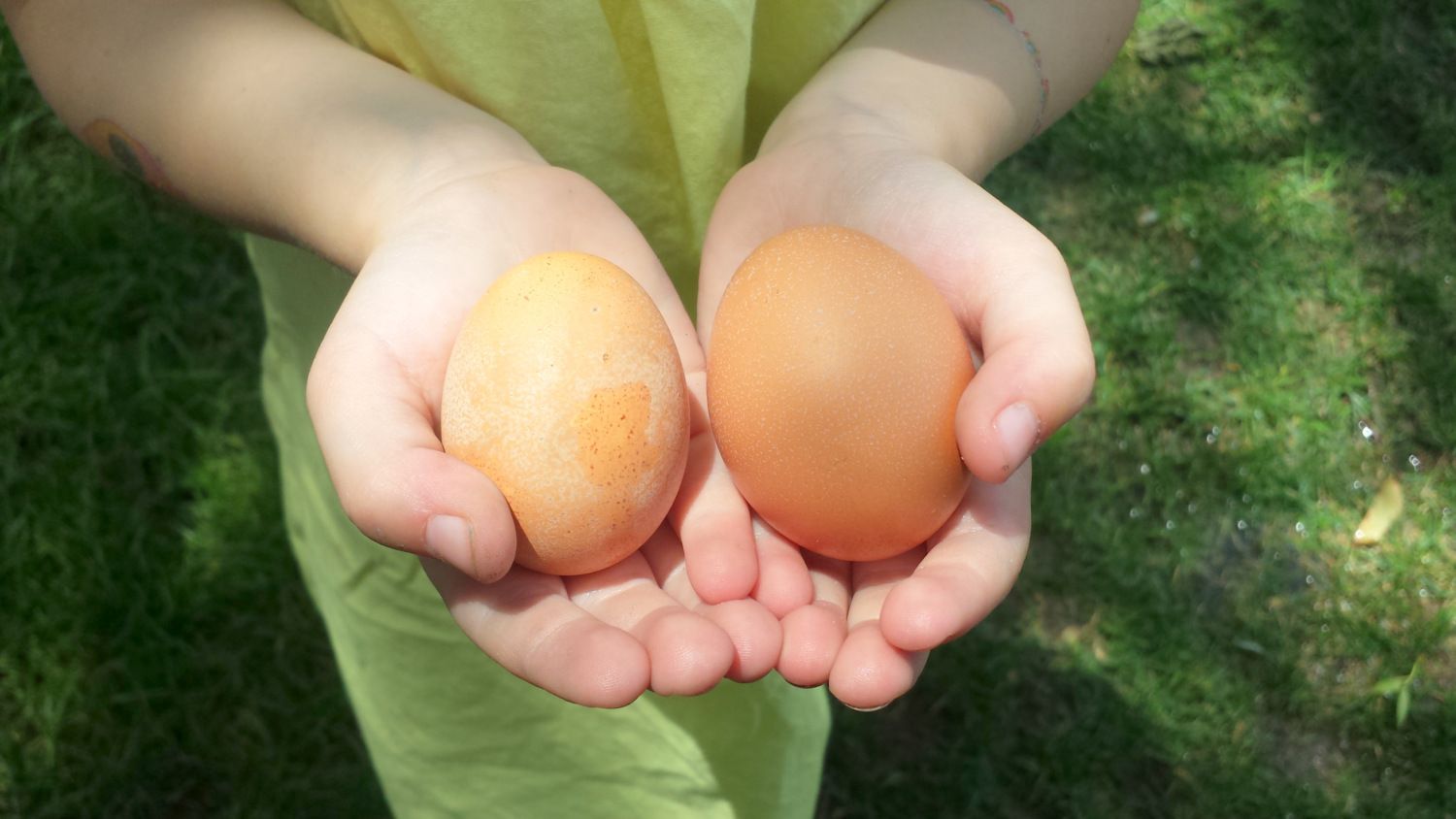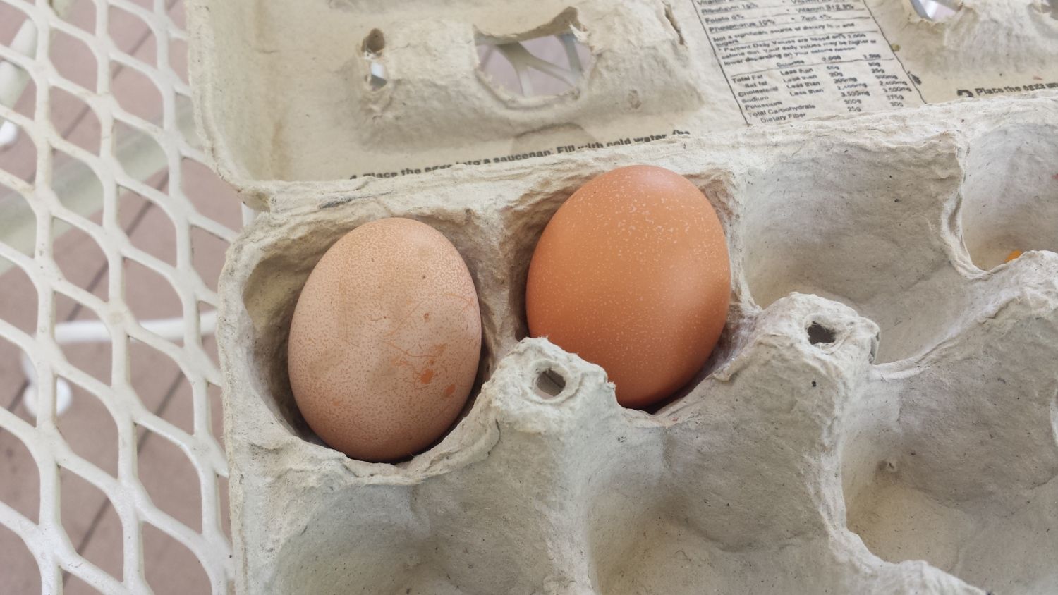 So I think both eggs were from her. All our older chickens are only about 18 weeks old, so we weren't quite expecting any eggs until August at the earliest. We're so happy though!