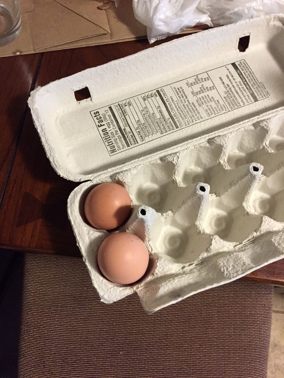 After much anticipation, I found 2 nice looking eggs yesterday. And they were actually in the nesting box and rather clean. It was perfect timing as well since I needed to grocery shop. If I only knew who was laying so I could congratulate them. And the first one I tried was a double yoker..