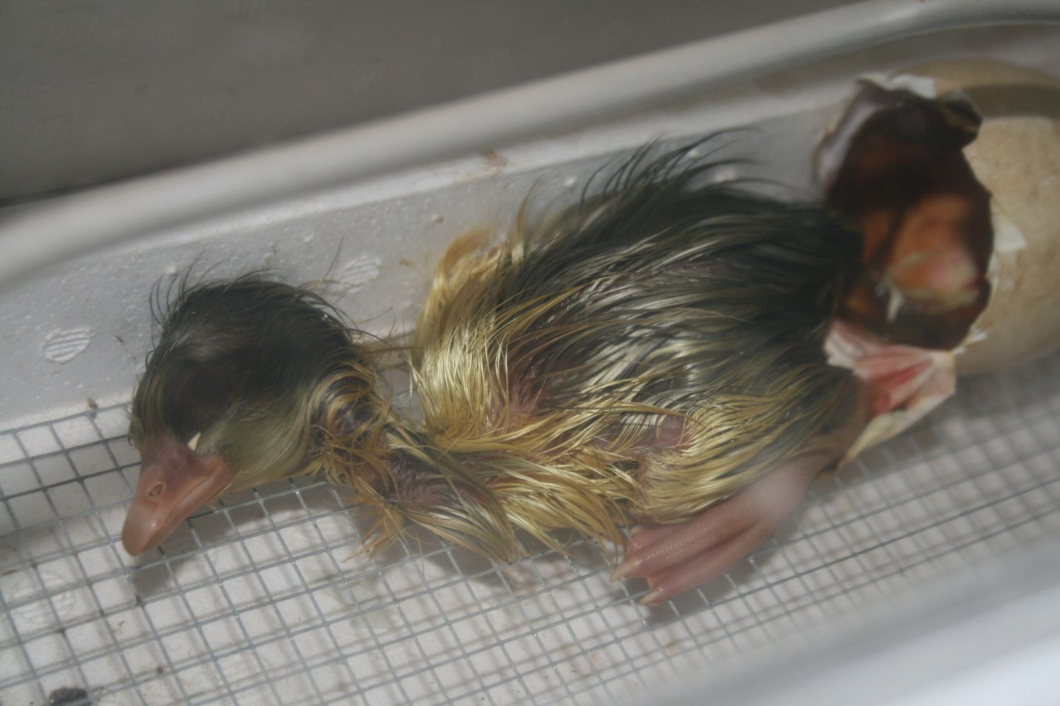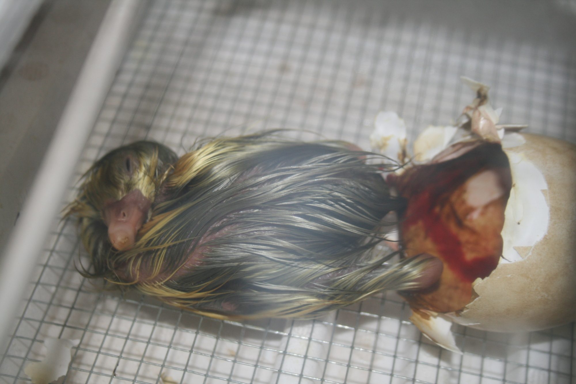 Got One out! He was stuck really bad in the shell I had to make his hole in the shell wider than what he had made. I chipped jus a little to the side put him back and he pushed out in about 5 minutes. Kind of worried about the other two. Some progress but not much. Really moving and peeping a lot. :/