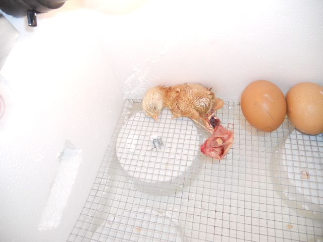today my first well second egg started to hatch, first on couldn't get out to air and died.' this one couldn't get out either, after several hours of watching and hoping my daughter freed this animal from it's prison. I don't advise it but it seems to have worked. It is alive, moving around and peeping. the umbilical cord still attached. We made sure not to hurt that I knew it must be left alone. here is a pic at 21/2