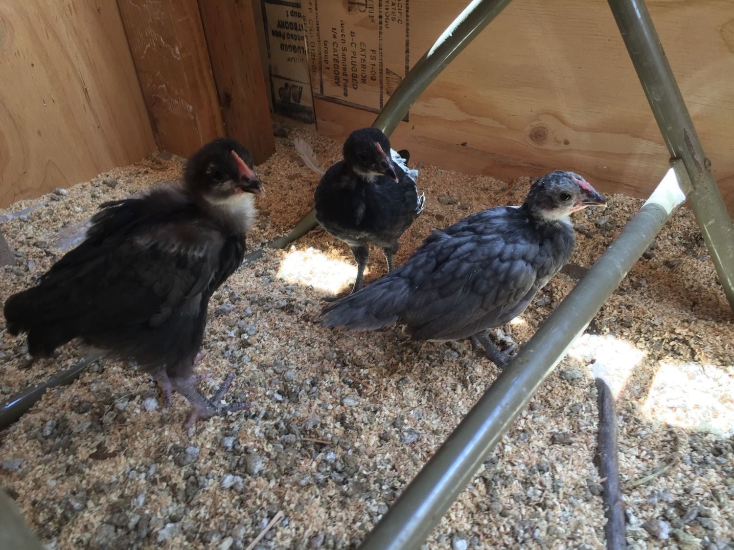 So I can't remember if I posted about it before but my McMurray order contained two (I had ordered 1) male black australorps. One was a ftt and died at around a week. He was an obvious runt from the beginning. The other hit about a week and his growth rate and feathering rate almost halted. I kept him separated from his flock mates when they went outside and gave him two bantams to keep him company. He also got spradle (I think that's what you call it) leg and had to have his legs bandaided together for a whopping 1.5 at least before it was corrected. I know most people would have culled him but I just couldn't give up on him like that as he was such a little fighter and still is. He is now out with his flock mates and two little friends in the coop. He has gained some size but is still continuing to grow at a very slow rate. Here is a picture of him next to one of the female australorps of the exact same age so you can see the difference.