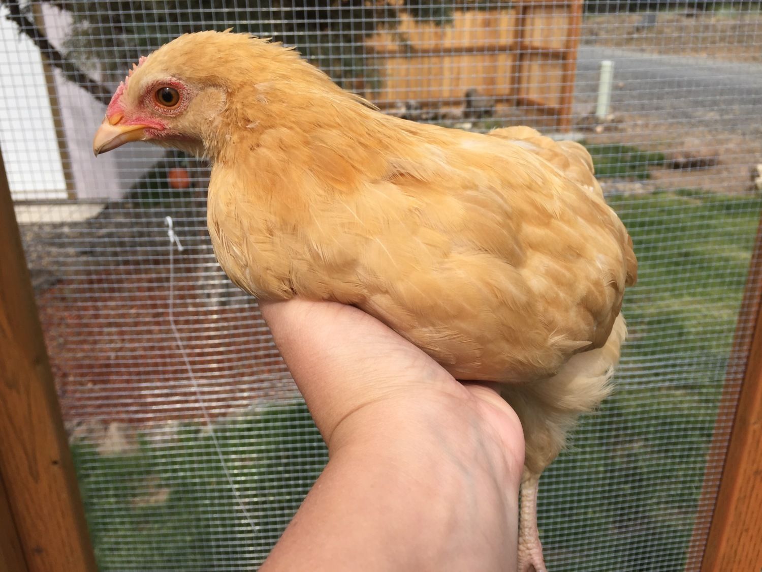 Next, I started to go out and be with them for about an hour of free range time, where I open up the little safe run and allow the two groups to mingle. There have been pecks, but nothing more aggressive than a peck here or there.