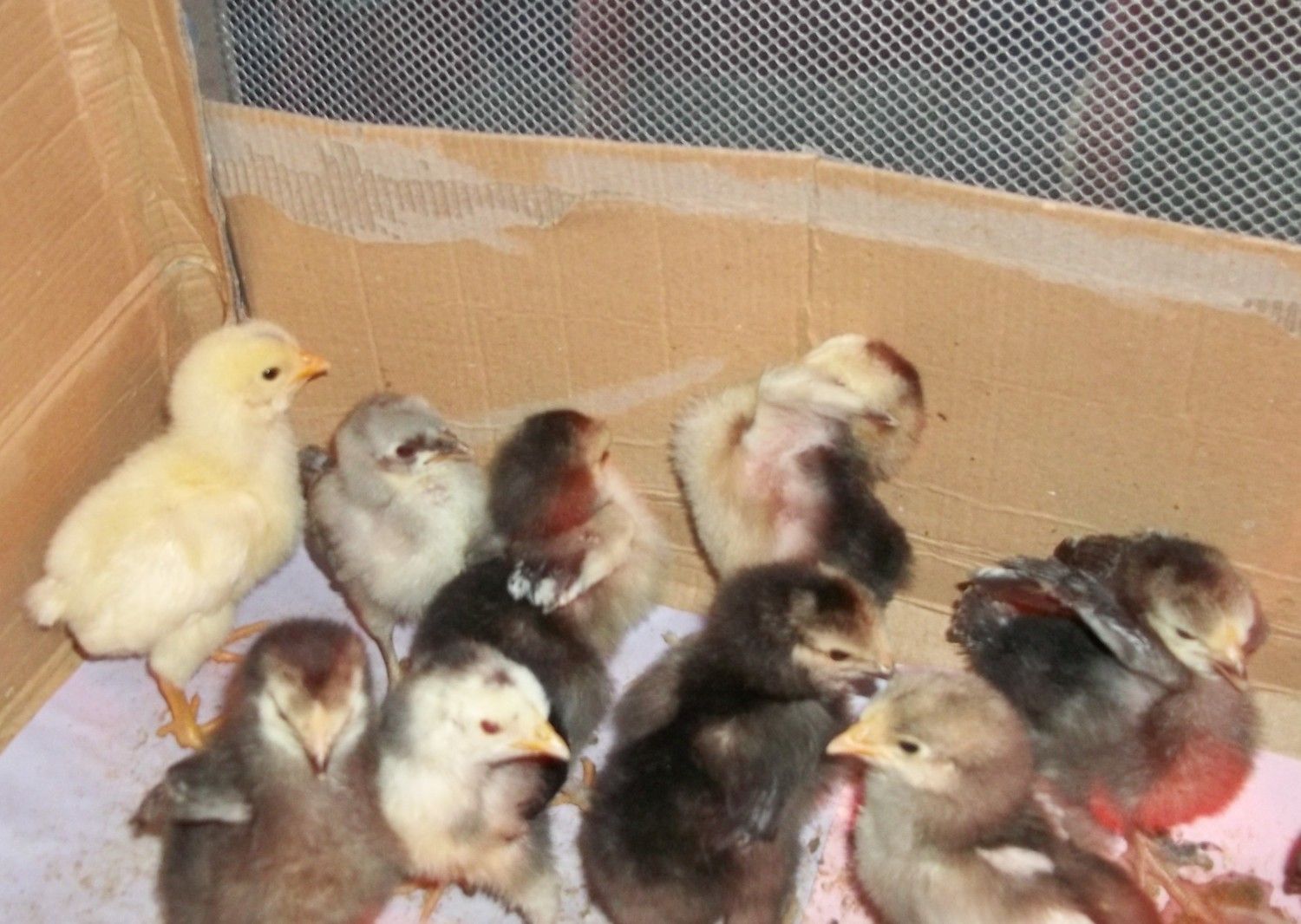 We had a scare with Daisy last night, she was a little listless, but we tried the sugar water and she is just as perky as the rest of them today. I've been constantly checking them for pasty butt as well. And I don't think I'll ever get used to the way they sleep, I hold my breath every time I see them napping to make sure I see them breathing! Good luck to everyone on their new adventures!