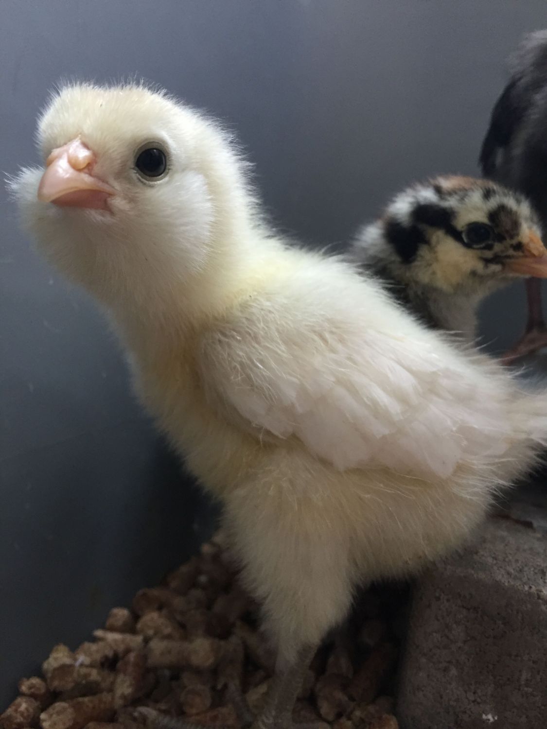 Thought I'd post some pictures of two of my chicks at 3 weeks old This first is Floki, my turken. And Ragnar, my Orpington Both hens, though they are named after men.