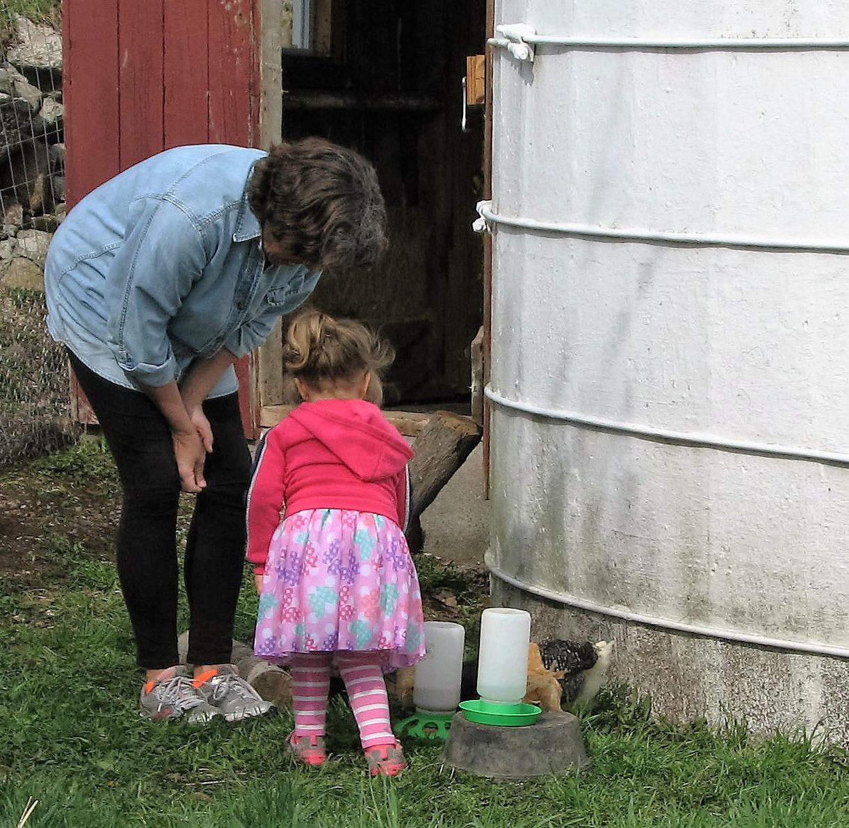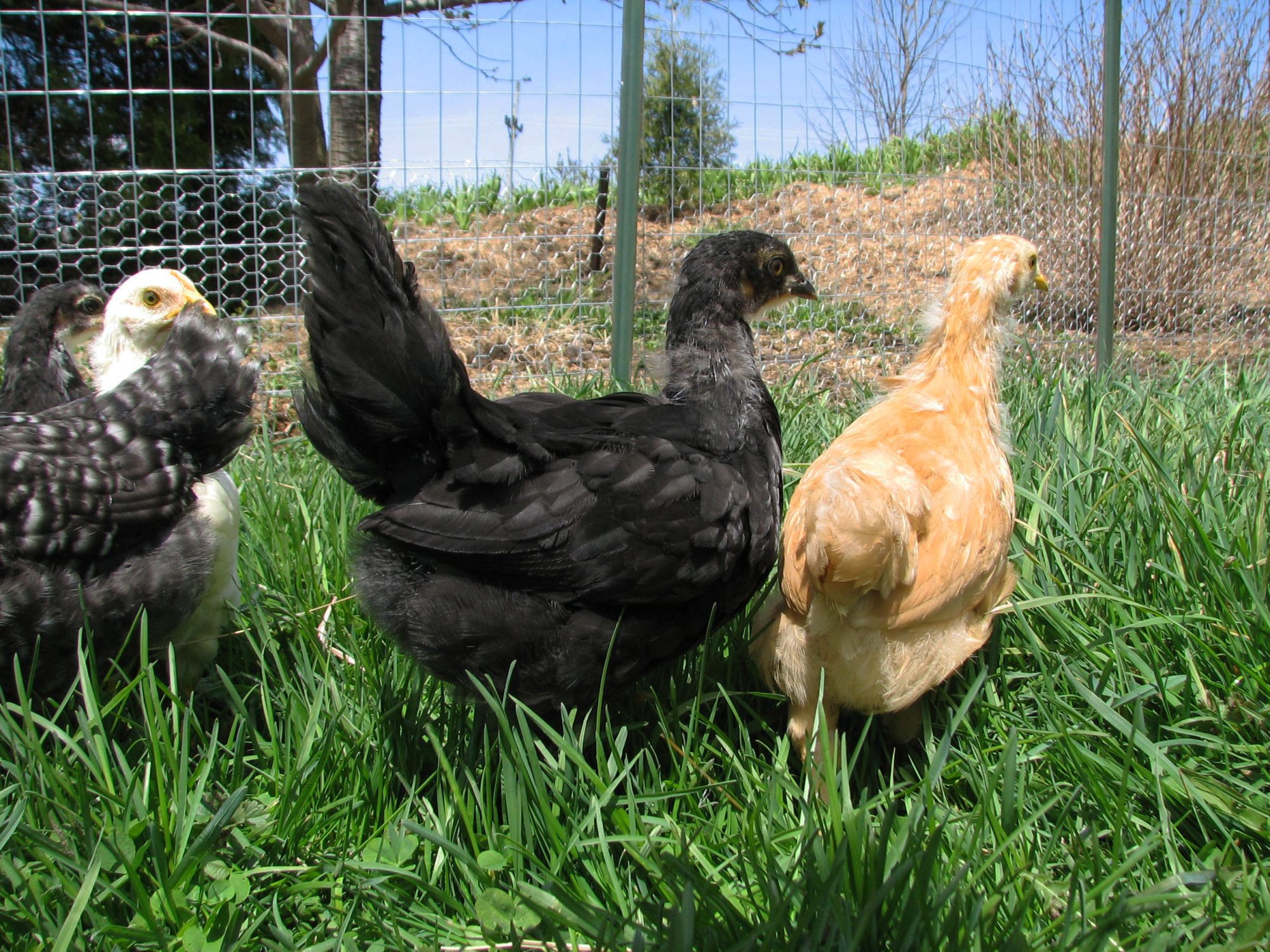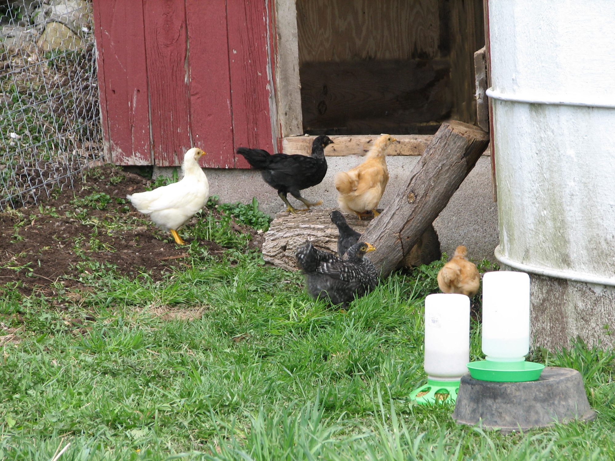 I really love the video of the heat cave. Awesome. My chicks are 5.5 weeks and are in the coop! I put them out last Friday night and they stayed. We had many field trips before that. The run fence is up, but not permanently connected to posts and the netting cover isn't up yet, so they only get run time when we're home. Since our coop is inside a large barn, it's darker than I'd like, so hubby hooked up the light in there so I can leave it on during the day. There's one window in the room between the coop and run--and they hang out in there a lot, but like the light on for the day. Here are some pics. I can't wait to finish the run. That is my oldest grand--3 in a few weeks. (I see now she's in my avatar photo too.) She loves the chicks. In the bottom photo she is giving them some grass she picked--sure they could use it. :-) The grass is getting long in the run. We may have to cut it. Oh--on this forum--what's an ovation exactly?