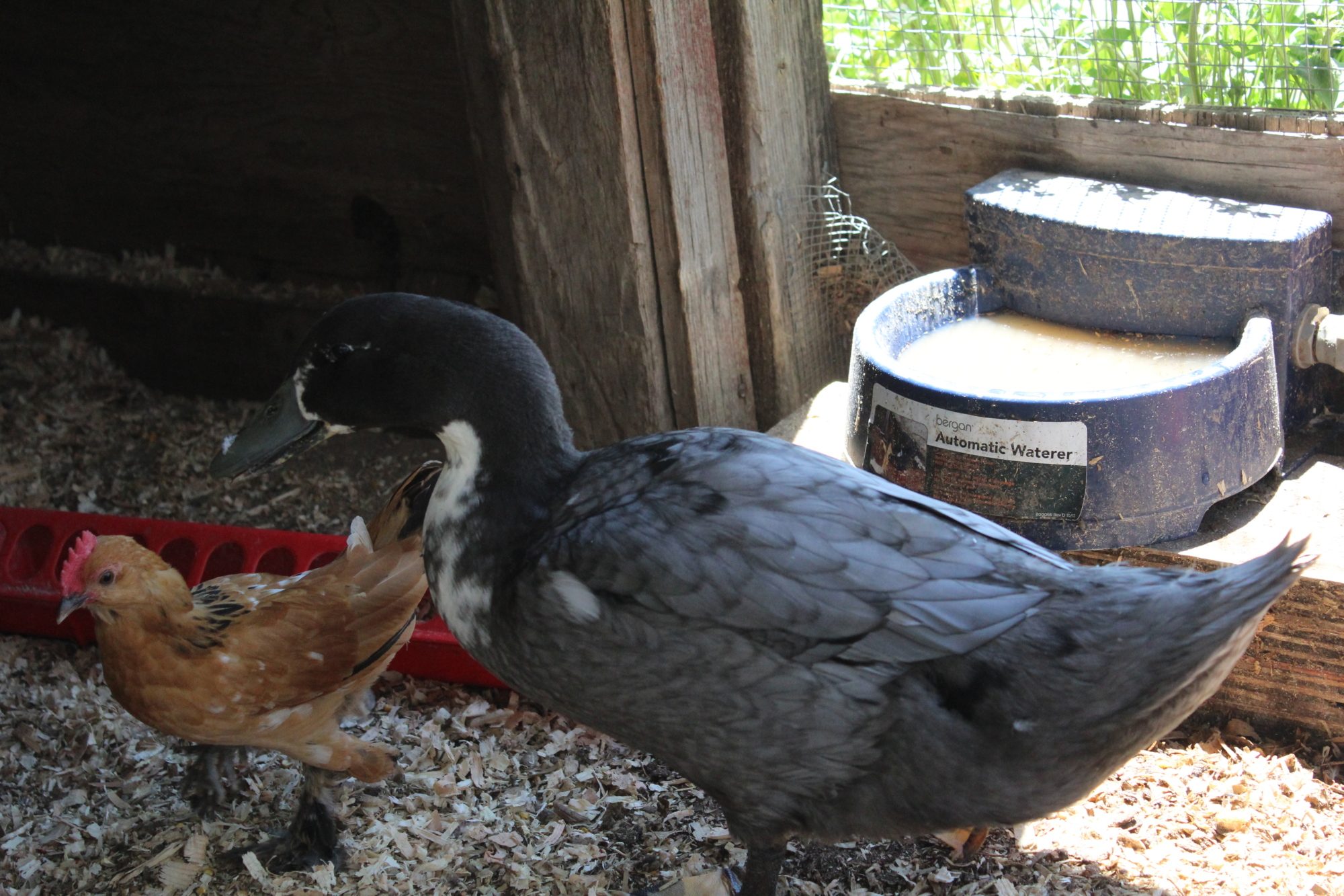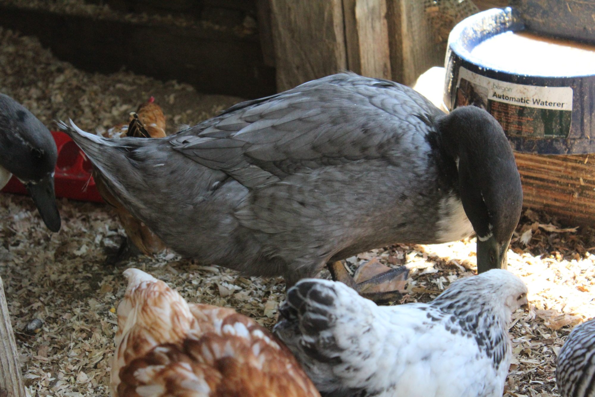 I also got these ducks at tractor supply March 24th. They were grey with yellow chests now they look like this. I bought them with baby chicks and the ducks (as you can see) have outgrown the the chicks. Is it still okay to keep them together. The ducks keep making a mess of the water bowl. Should I separate them? I feel like my chicks don't get any clean water. Its like 10 Minutes and the ducks have made the water brown. Thank you in advance.. any help I can get I would appreciate it. I have another flock of chickens that are a lot older with 2 roosters. Should I put them in there with the older (more their size) chickens and roosters.
