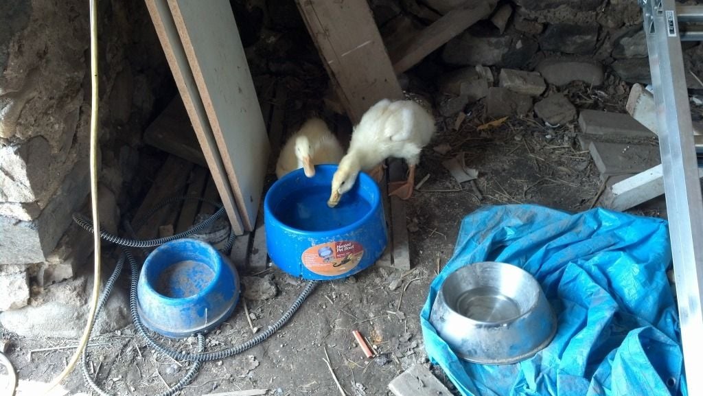 Here they are drinking the cats water after I showed the ducks the garden shed