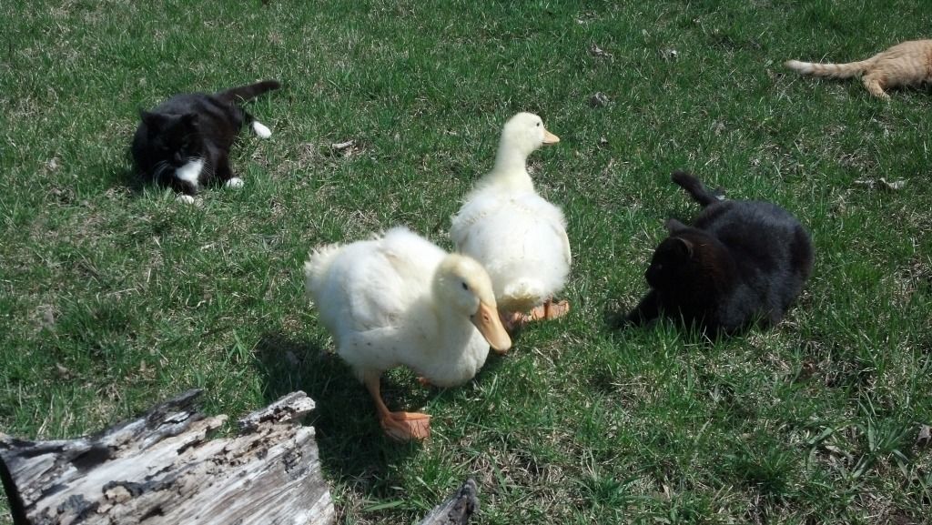 6) do ducks/cats generally get along??? I was a little worried since we have 6 barn cats as pets that sleep out in the garden shed, but they seem to have taken to the ducks quite well. they watch them, lay down near them, and the ducks actually let one of the cats brush up on them today.