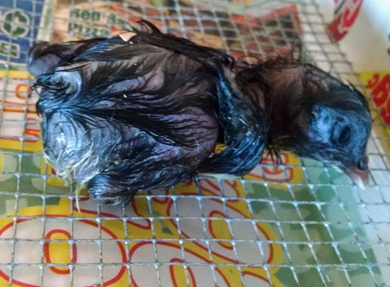 I wouldn't expect him to fluff out as I would think that he'd be a sticky chick after seeing the condition of the membranes during hatch. You can get a warm washcloth and try to wash him up to get that dried fluid off or you can wait until it wears off eventually. A chick can take up to 24 hours to go from pip to zip. I don't ever let mine go past that with out starting an assist. I would keep an extra close eye on them and make sure the membranes aren't turnng that yucky brown/yellow that the first one had. That is a sign of them drying out and possibly becoming glued by the inner membrane. The membranes should be nice and white and papery.His eyes are fine. I tried to get a picture, but a black chicken just doesn't photograph well, IMHO. He isn't fluffy though except on his butt. It may be because I misted the eggs a few times because the humidity is only about 65% and they seem dry. The one that made an external pip isn't progressing as I would like but is still alive. There are two other eggs who have also pipped!