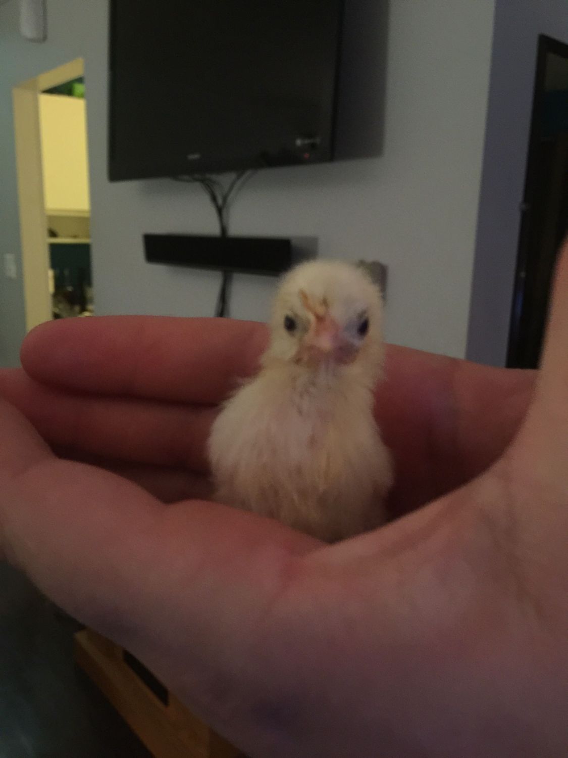 So, idk if this is normal to his breed, or if something is wrong, but, he NEVER. STOPS. PEEPING. Unless.... You're holding him. And it has to be a certain way. I'm not kidding. My entire family, to include kids and OTHER animals are all looking for excuses to leave the house bc of the noise. I put him in with the baby Silkies and they were great. No pecking or trampling, but they look pretty frazzled at all the peeping too. He isn't interested in making chicken friends at all. So, I carried him around a little. And then a little more. You guys, I took this chicken to CVS and to pick my kids up from school with me, wrapped in a hanky and tucked in my shirt. I have never seen anything like this and neither has anybody else.