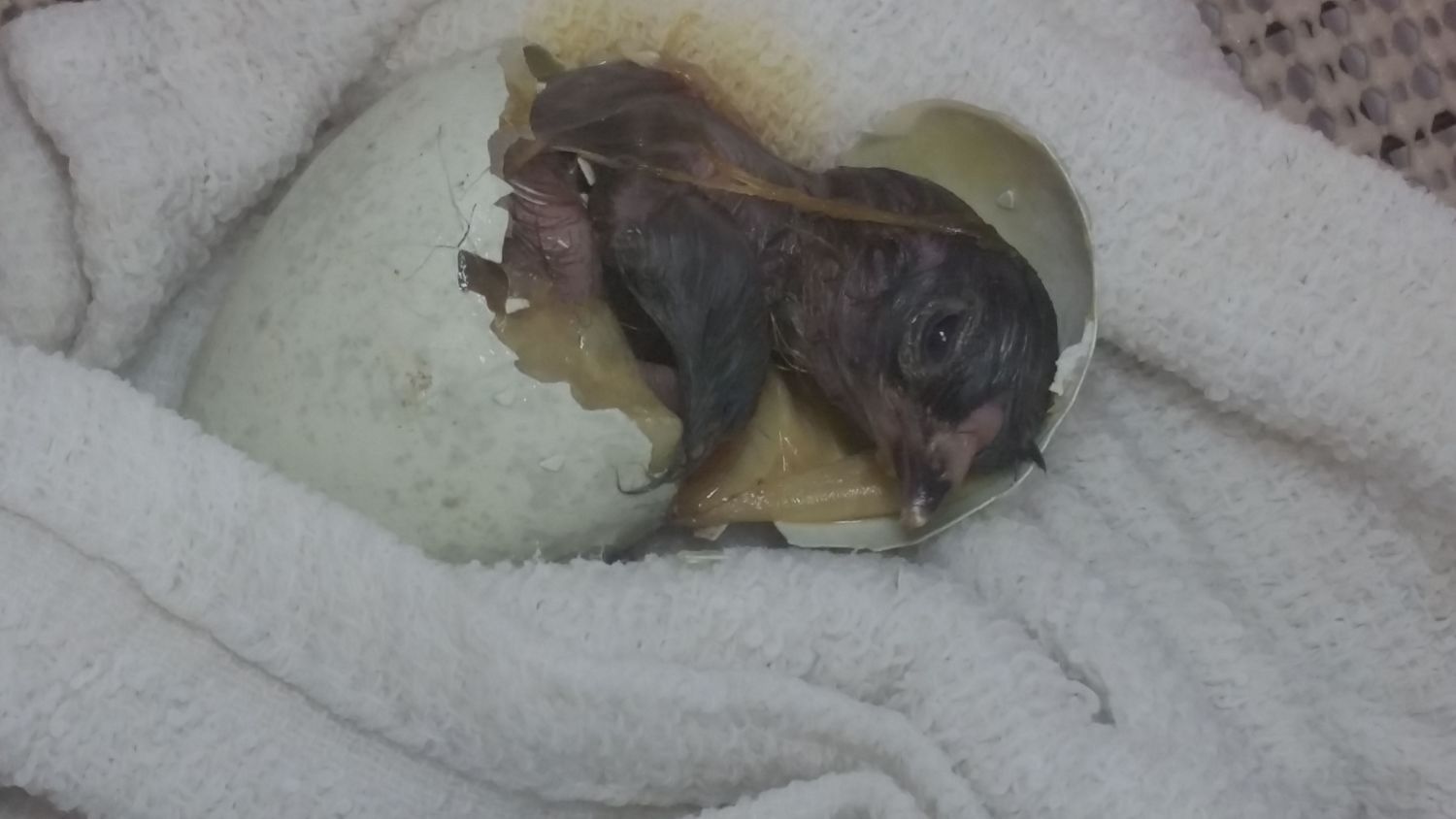 Allow the chick to push out of the shell when he's ready, but after this long he may be too exhausted to do so and you may need to prompt/assist just a little. If you see blood vessels or yolk near the thighs, again stop and wait.