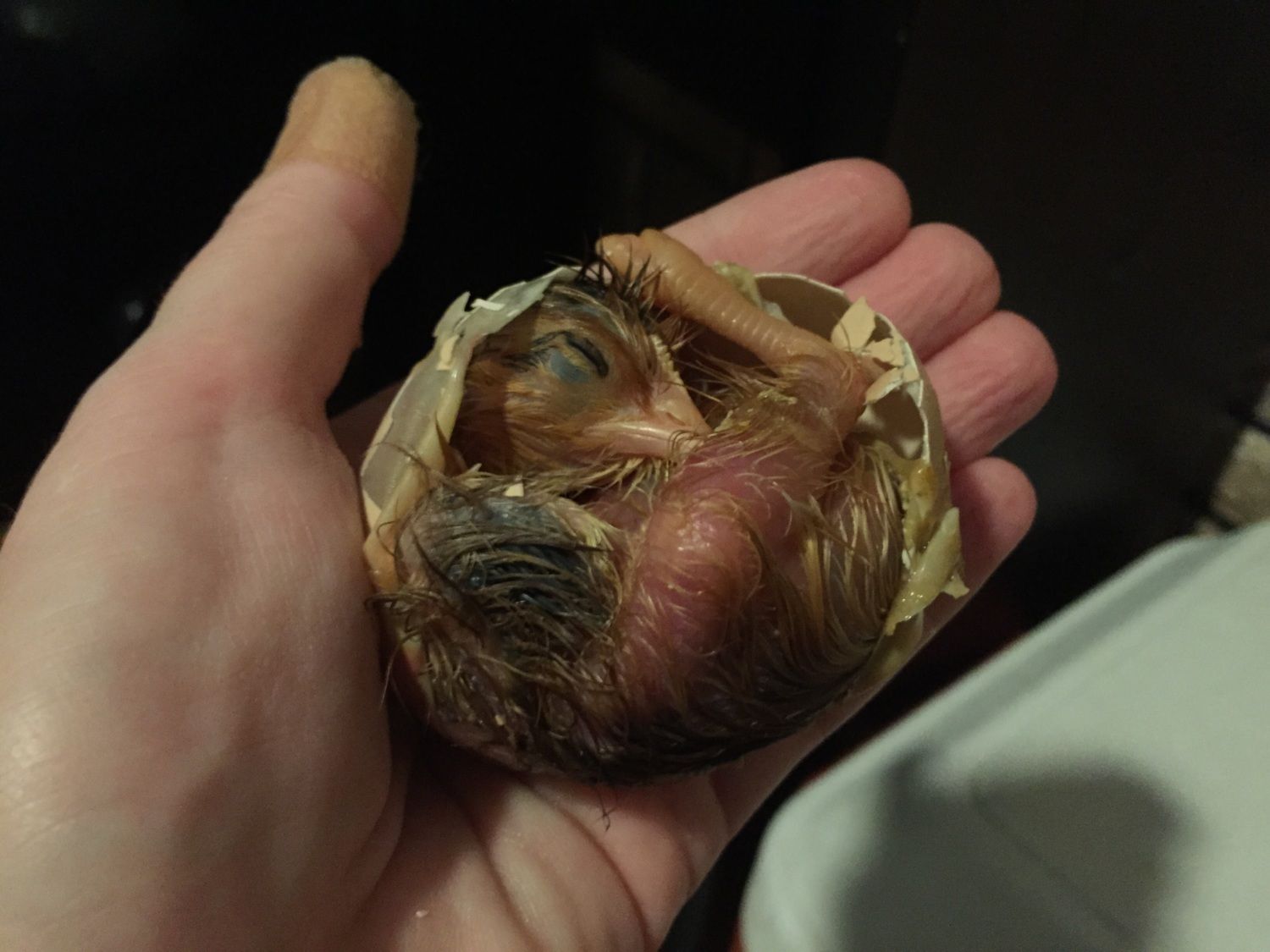 one larger egg (mix) I noticed had pipped too since I last checked this afternoon. No peeping or movement from that one either so I just let it sit again. No assistance for that one yet. Membrane looks ok. Not dry like the others.