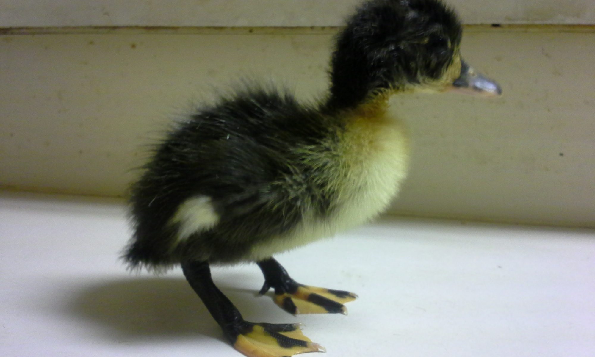 The healthy first duckling is actually sitting on my shoulder now, but it keeps nipping at me.