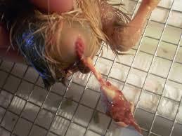 Ya, yuck. That's the cord and membranes. The navel is a bit open yet. You can put a damp paper towel in the bator on the screen floor and put her on that and wait it out, or tie it and cut it off closer to the navel. If it's still there, just don't pull on it.