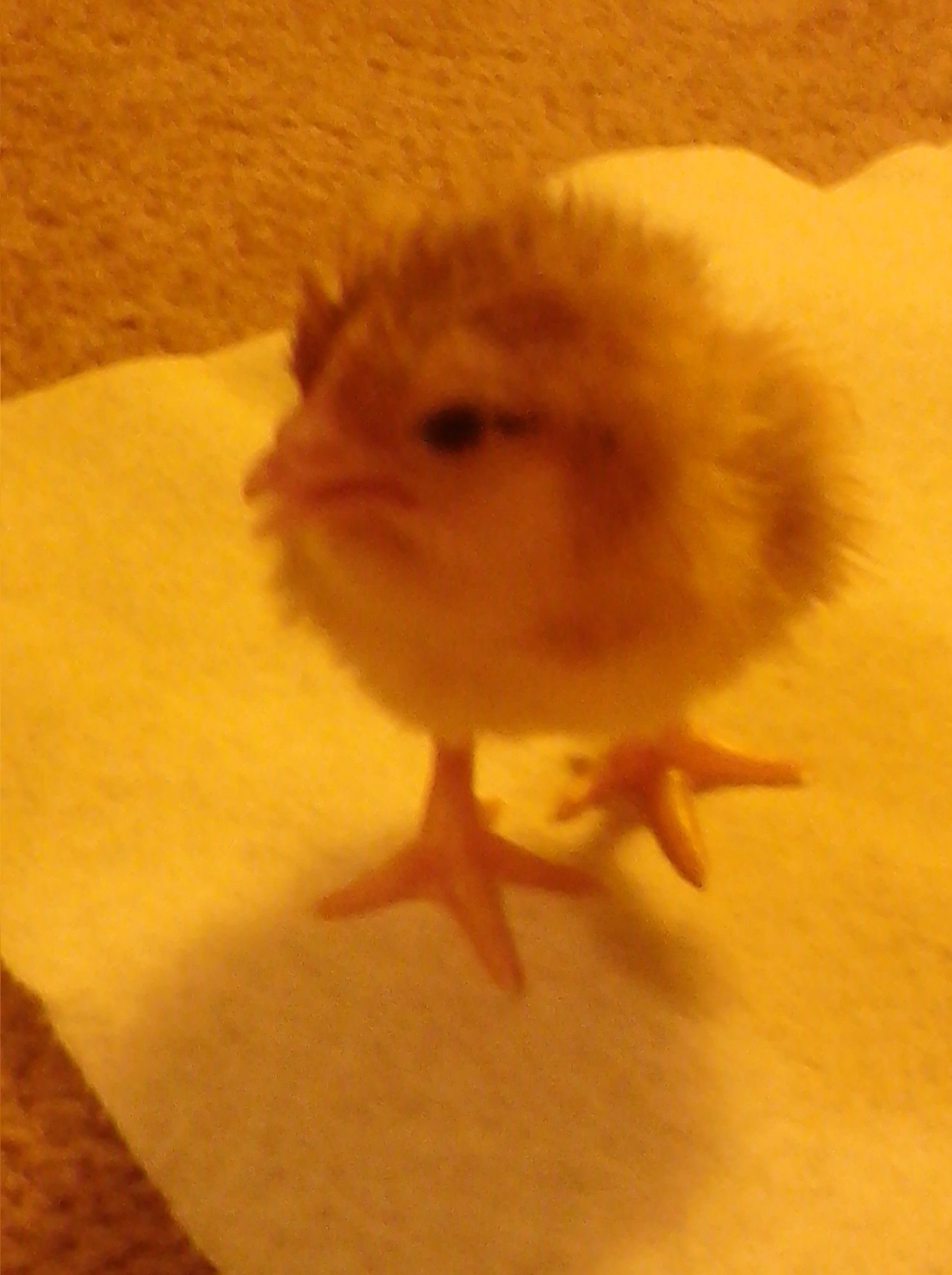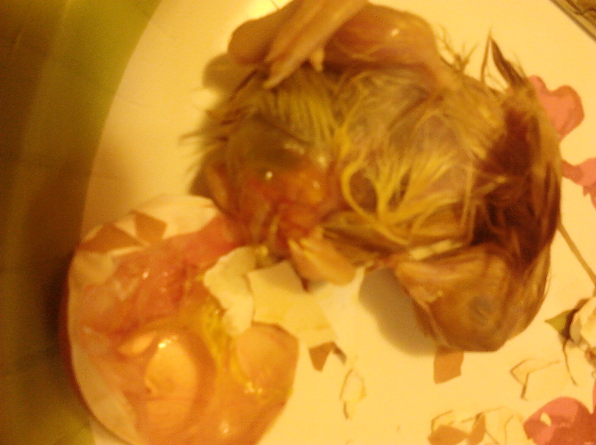 Look who was up and running around in the incubator this morning!! It's the one I assisted! When I went to bed last night, all he was doing was just laying there. I just knew for sure, that he wouldn't survive through the night. What a surprise!! It's unbelievable how curled up in the fetal position he was, to now being able to run around. None of the other 8 eggs have done anything. I will be looking further into them today. Will try to get some good pics on my findings. P.S. I had a space heater on him for the pic and only had him out of the brooder for 1/2 a second. ;)