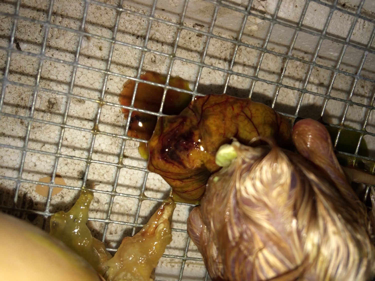 Well now this huge greenish yellowish glob with blood vessels came out. It's still chirping and moving around but it doesn't look good. Still put in container?
