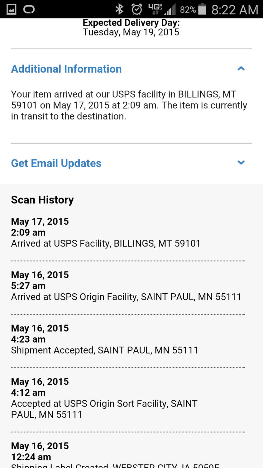 I got an email yesterday said they shipped and checked the tracking code this morning and they got to and left billing MT at 2:09am this morning and heading to my local post office. (Im very impressed with there shipping speed)