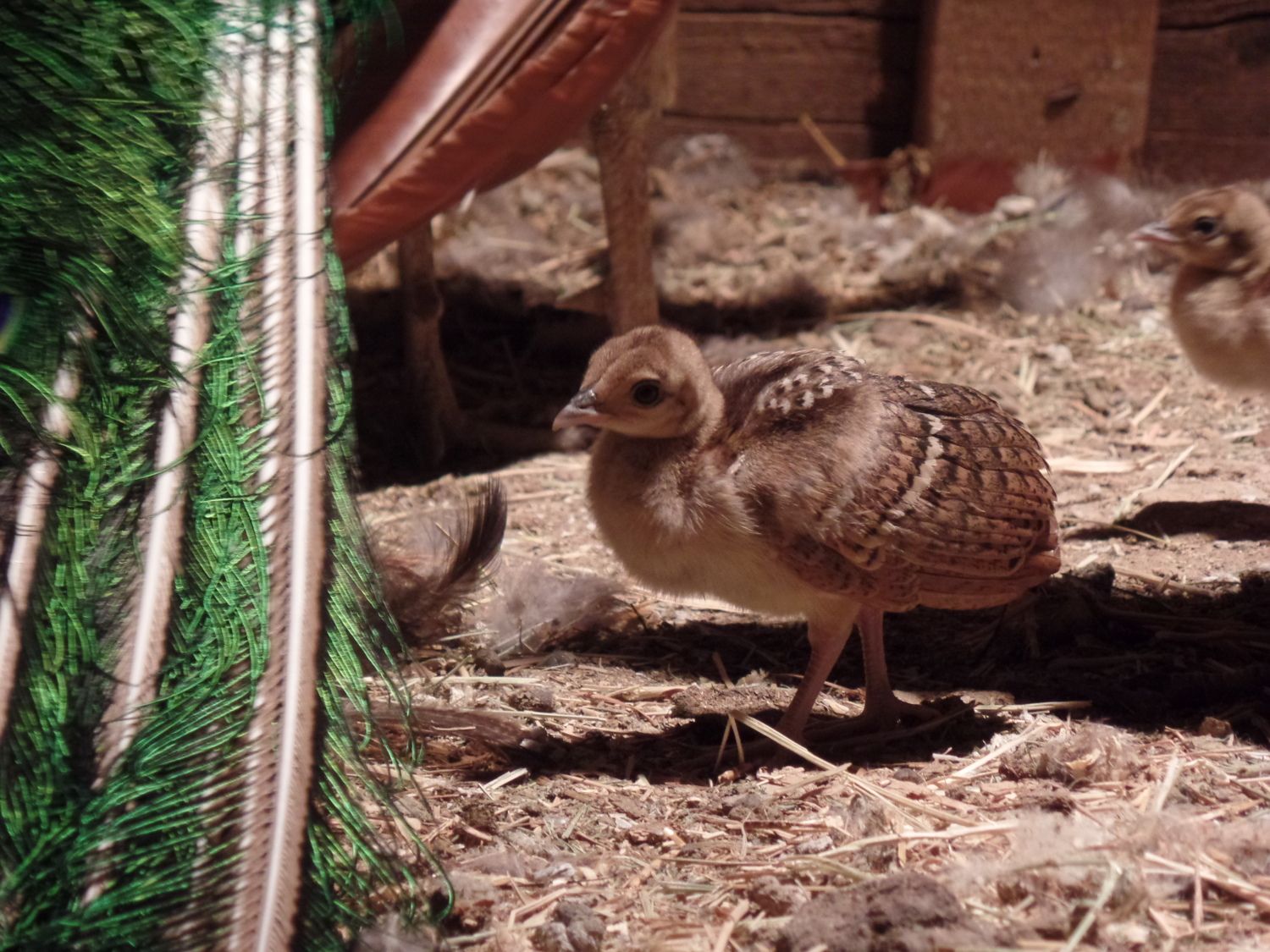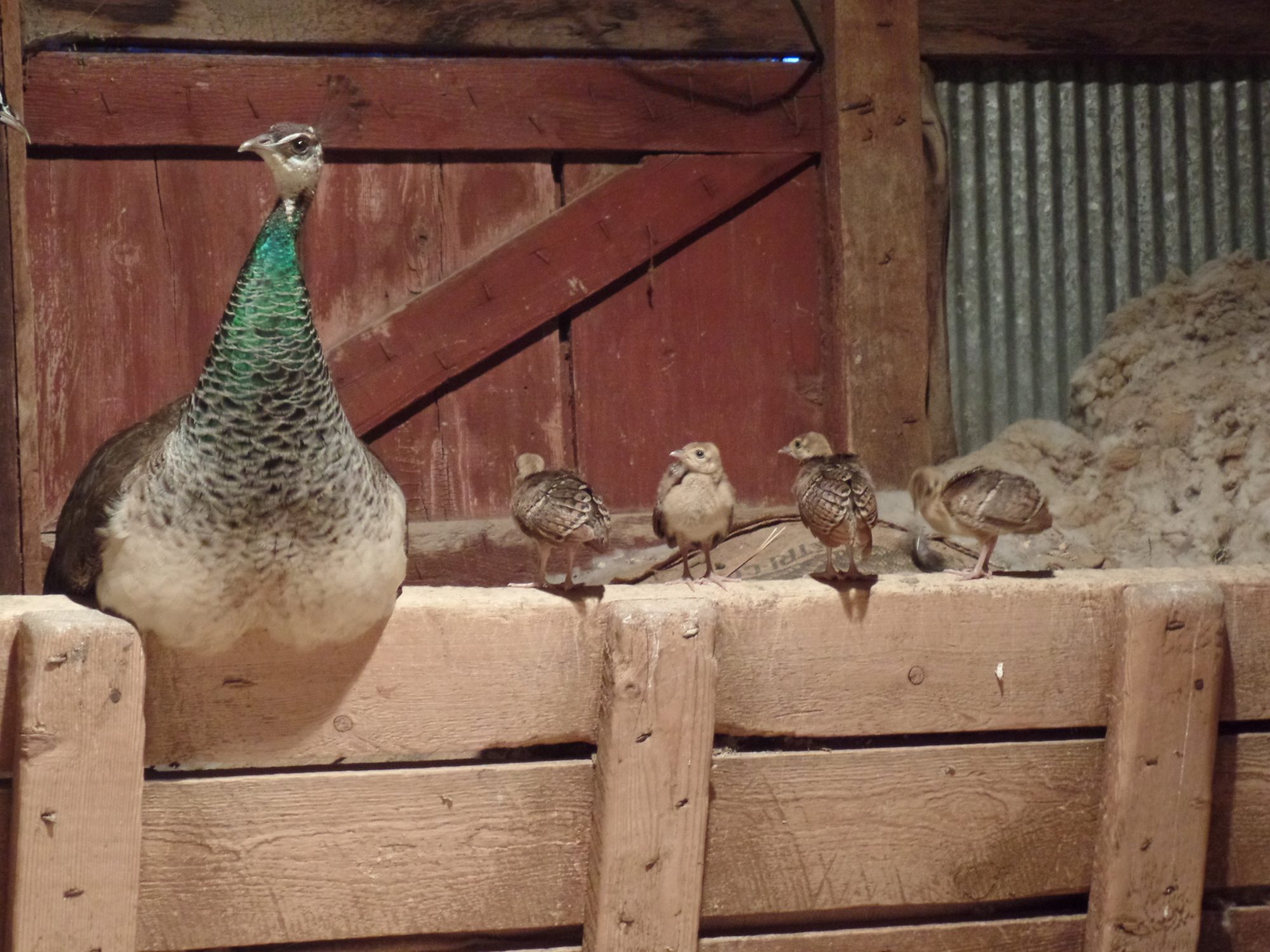 She started laying eggs in late May/early April . I tried to incubate the first 10/12 with no success so I left the resultant ones for her to deal with herself. She didn't leave the 6 eggs for a month at which she had 3 chicks. This has in the outside part of the coop. The day after they were born I found one chick soaked and bloody (obviously pecked) but after taking him inside to a heat lamp he recovered and I put him back in with her the next day.