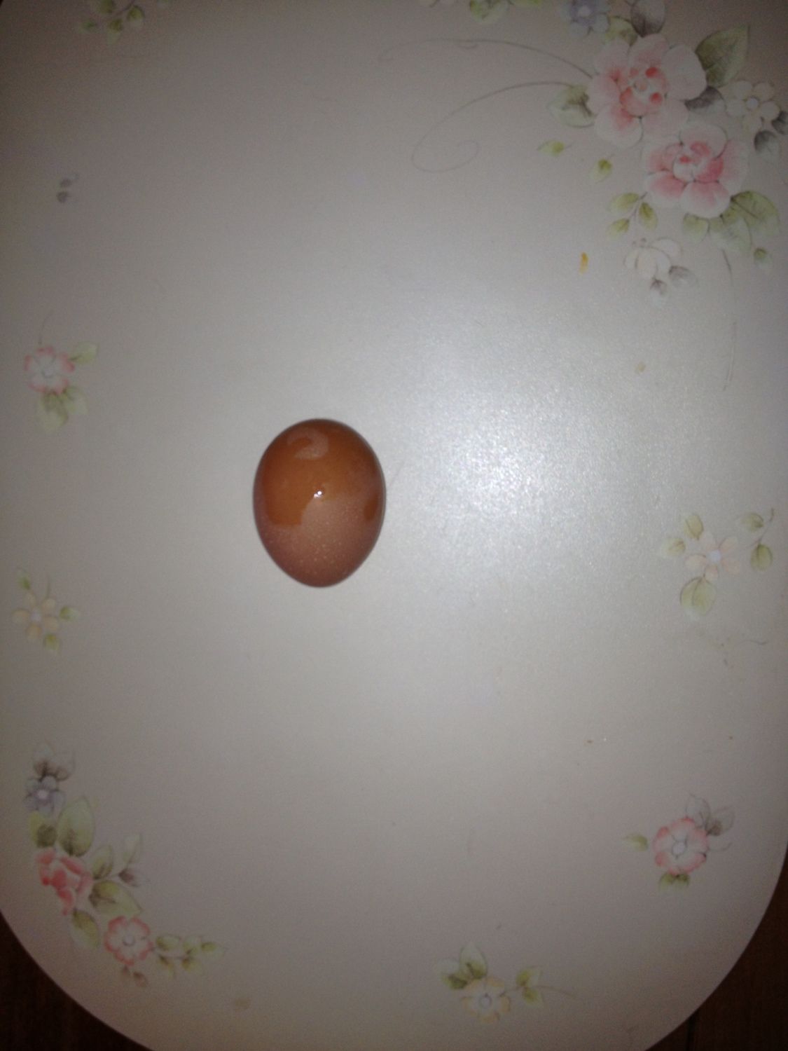 Came from my New Hampshire Red who had just hopped off of it when we found it in the nesting box. She stayed aloof from the other two "juvenile " hens the rest of the day. She is a woman now! I include a pic compared to large store bought eggs and a pic of the yolk compared to storebought eggs for anyone new to back yard free range eggs such as myself. I also included a pic of the finished product.![]()