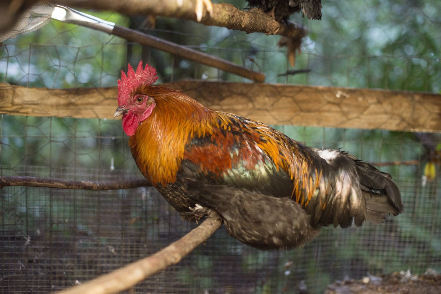 I have some two month olds in my flock around him and once they are integrated and everyone gets along he does fine with them He only tries to mate with the older ones and my bantam hens which he is way too big for. He is people friendly and is around my three kids all the time.Have you found a home for you too yet?