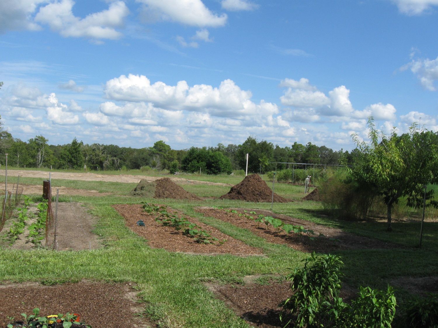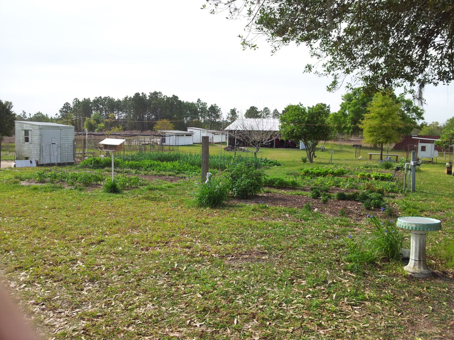 We plant our gardens in the winter. We start a lot of our seeds in our green house around September/October. We compost the chicken poop along with grass clippings, leaves and branches we put through our chipper/shredder. I use litter in the coops and when I clean out the coops it goes into the compost along with plant scraps. Plants like collards and most green, lettuce, onions, kale, peas, cauliflower, broccoli and others can tolerate frost. The nightshades need to be covered to be protected from the frost. Here are a few pictures.