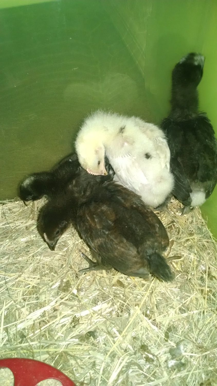 We have 4 chicks that are almost 3 weeks old. One of which we think is a rooster, so we'll have to take him back to the farm in Plant City that we got him from. Not sure what breeds we have but were told we have a Barr Rock, a Jersey Giant, maybe an Austrian White and the other one is a mystery.