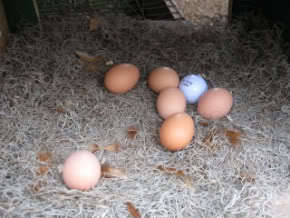 She's laying eggs in the run, or in the litter (sand) in the coop. ^