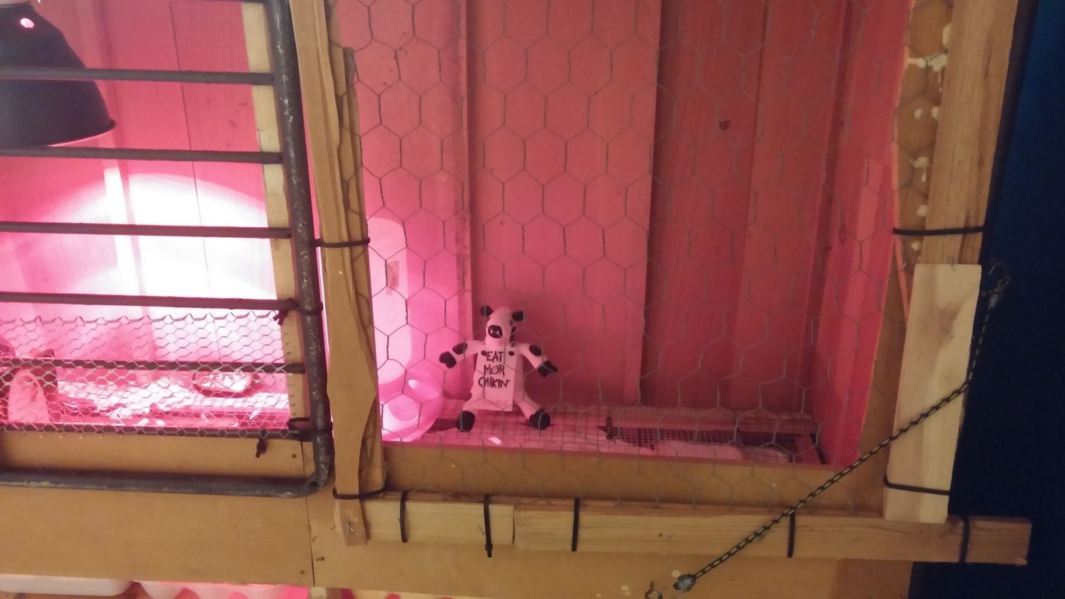 Wife thinks my addition of the Eat More Chicken cow is"Just wrong" I think it's funny. The also got a duck to cuddle but she didnt say nothing about that now did she? Newp.