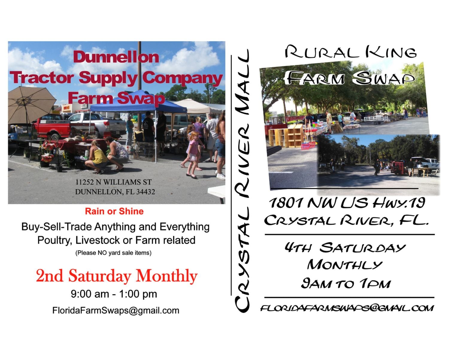 Just a reminder of our Dunnellon Tractor Supply Company Farm Swap, 11252 N Williams St, Dunnellon, FL. this Saturday April 9th. Maybe you you have chicks, chickens, guineas, rabbits, goats, pigs, ducks, geese, turkeys, other livestock, plants, crafts, tack, old farm equipment to sell. Come join us for a day of talking, swapping, selling poultry and small livestock. We suggest vendors bring either a canopy or umbrella for shade. 9:00 AM TO around 1:00 PM, Always the 2nd Saturday Monthly.