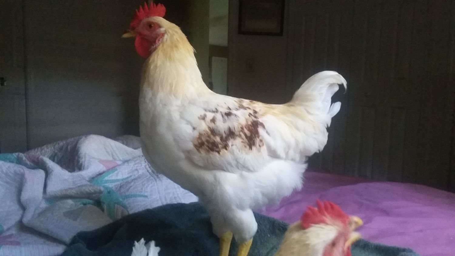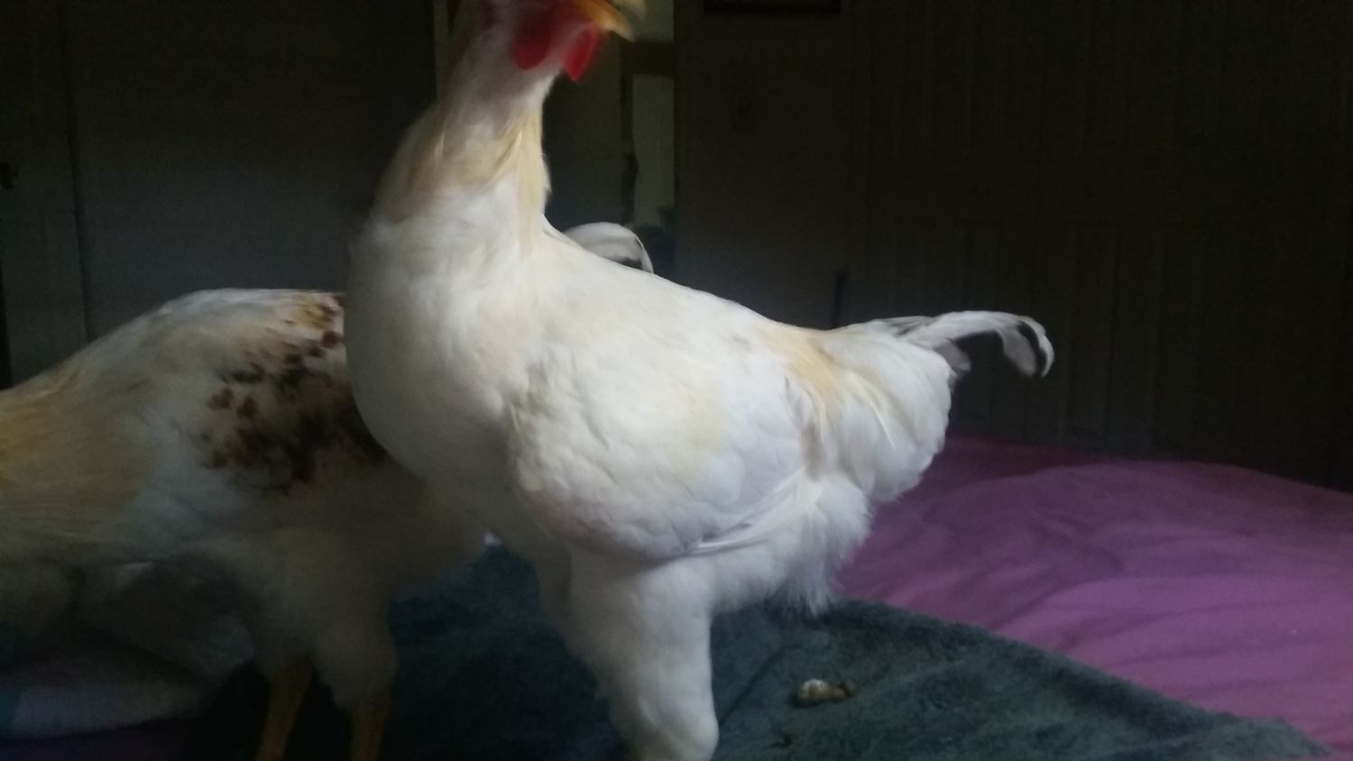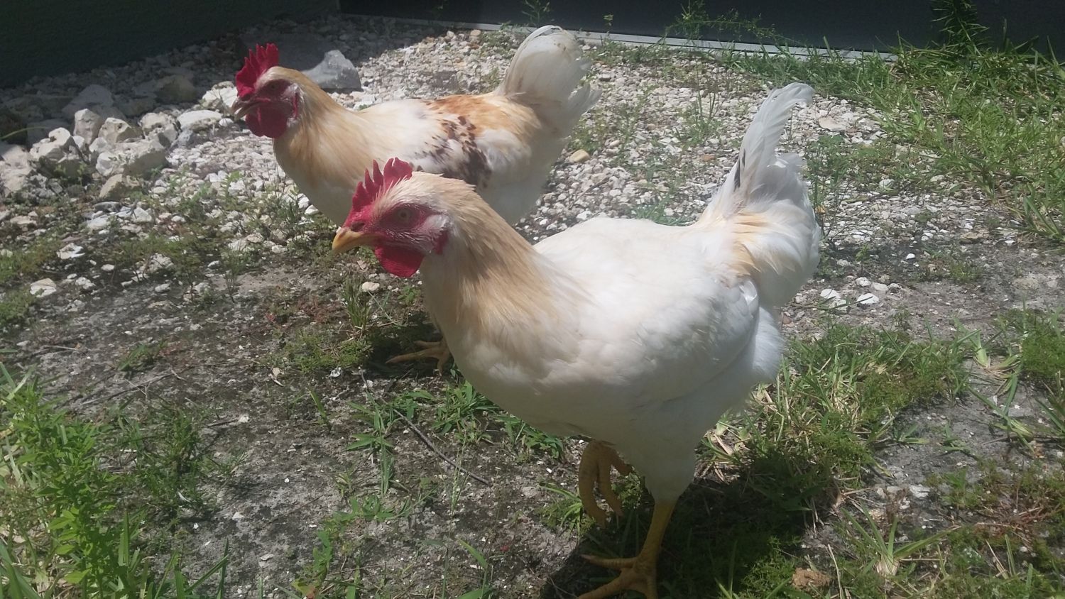Hello again everybody. I have come back with some pictures of them. I searched the "What Breed Is This" thread, but it said that the chicken has to be purebred and mine are definitely mutts. They woke up my mom at 5am this morning as they were crowing, so right now they are still sleeping in a dog crate in my room. She said that if they keep this up I am going to have to rehome them. Why do roosters have to be so loud? Ugh.