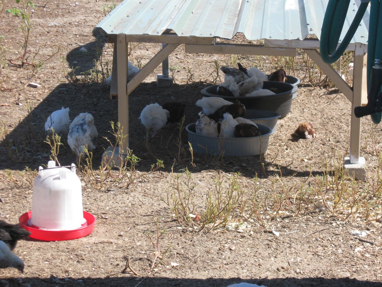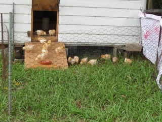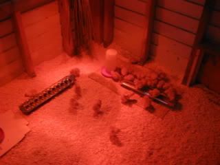 Chick grow-out coop with a heat lamp.
