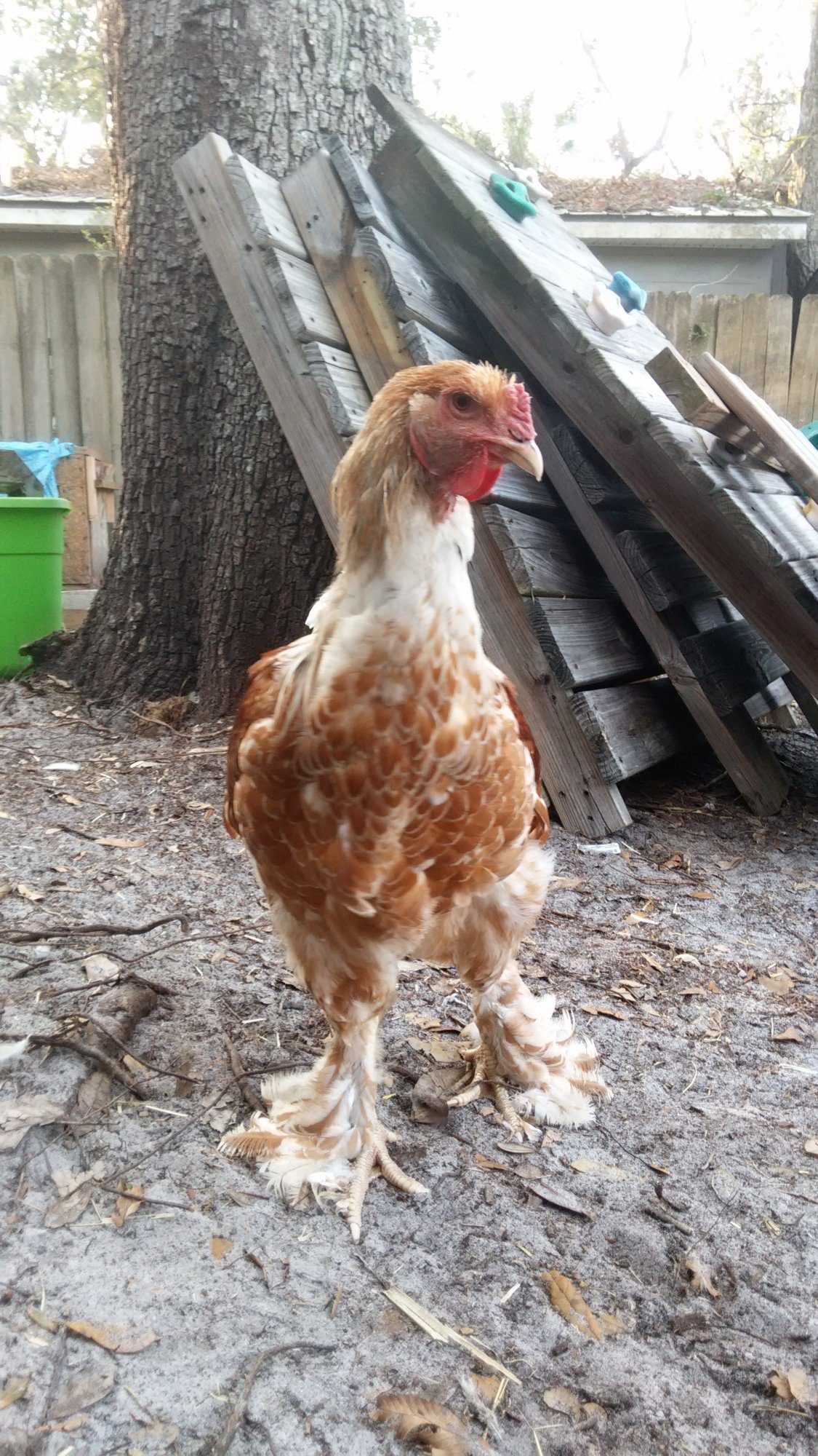 Don't worry, be happy... How old are they? I don 't heat my coops. My birds are just fine. They have shade trees in each of their pens for the summer heat and shade/rain tables also to get under. These are older pictures and we have added more coops with pens and more trees in their pens. The white rope wire around the bottoms of the pens is electric to keep the predators out especially at night. Once they know the electric wire is there and get shocked, they don't come back to test it out again. Also all of the pens are covered with a heavy duty netting. I have had my share of predators in the past.