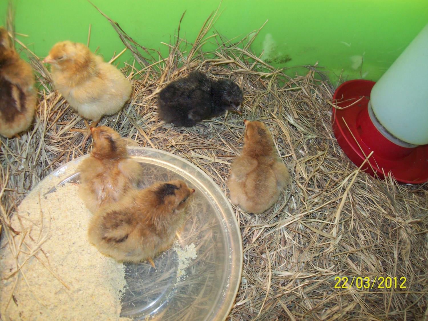 Well the last one hatched out lastnite.So there is only 6 but not bad at all since I didn't know if any eggs were fertile.Here are the chicks in green tub and some of my other birds.