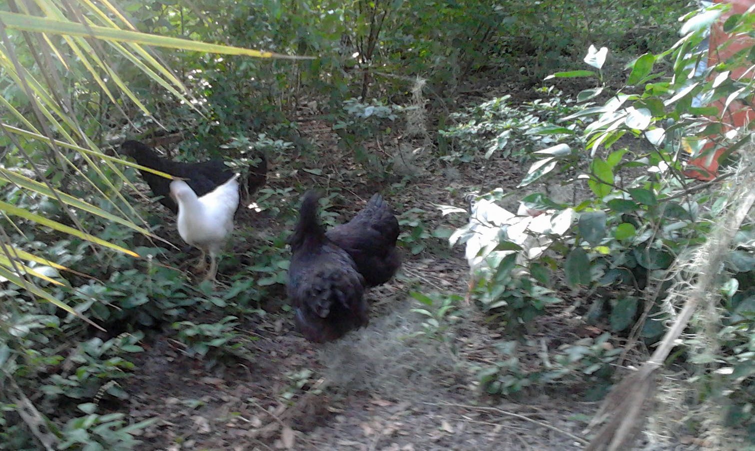 You got some good Aussie girls there Cindy, good top lines on the 2 in front, and nice open tails too. It gives you a jump when you can pick them from almost grown pullets. The Del looks to have a little pinch in the tail?? Did any of those turn out to be good? I have a couple that I am liking from that breeding. .......stanI thought I would add to the praise of Stan's chicks. Mine went out to free range for the first time this evening. The Australorps are huge, but the Delawares are rapidly catching up. It is a bad cell phone image, but I wanted to capture their first time out of the pen. They did great and went back in the pen without any prodding.