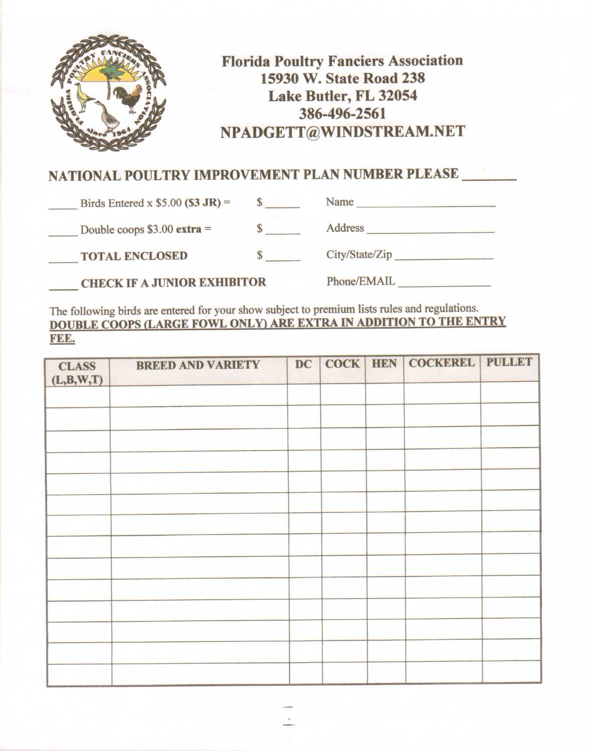 Here is the catalog and entry form for the Florida Sunshine Classic. https://docs.google.com/file/d/0BzuijiLXXixLVHhkRzZnbU9QOGM/edit
