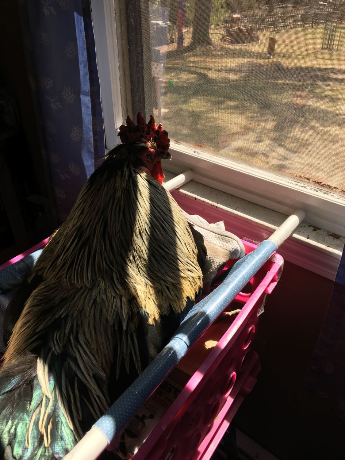 Hello, so Floyd is staring to eat on his own. Beak is healed and his comb and waddles are slowly getting a nice red color. He seems to maybe be seeing out of both eyes, he doesn't cock his head to one side as often