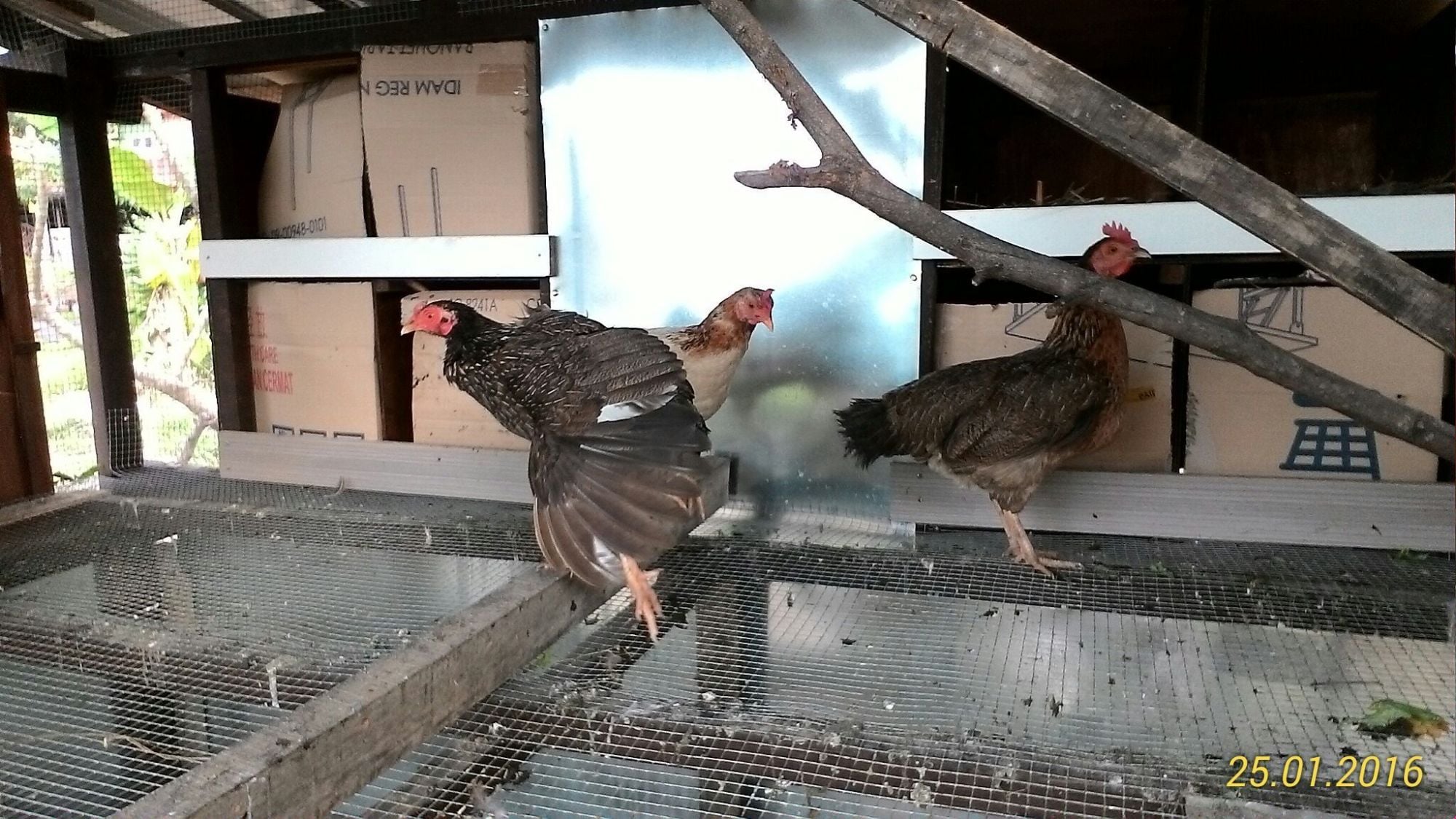 Seriously i don't really know the types of chicken flocks that I've had. Local call it as Ayam(Chicken) Kampung(Village) & there are 5 of them( 1 big roosters, 1 small rooster & 3 hens ), the best part is... I got them for free
