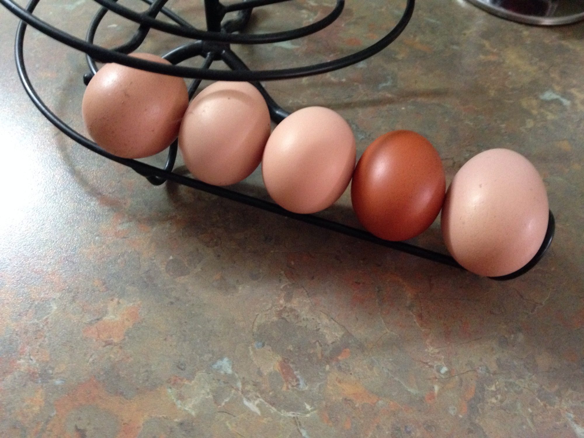 However, my Wellie may be getting done with being broody, so until I can see who is laying what, I am not entirely sure if it is both BCM's or just one BCM and my Wellie starting up again. I am kind of hoping the mossy back isn't laying yet hoping she comes in a bit darker yet. (However, I've gotten two pullet eggs in one day, and my Wellie should just start laying fuller size eggs after brooding...my other broodies do.)