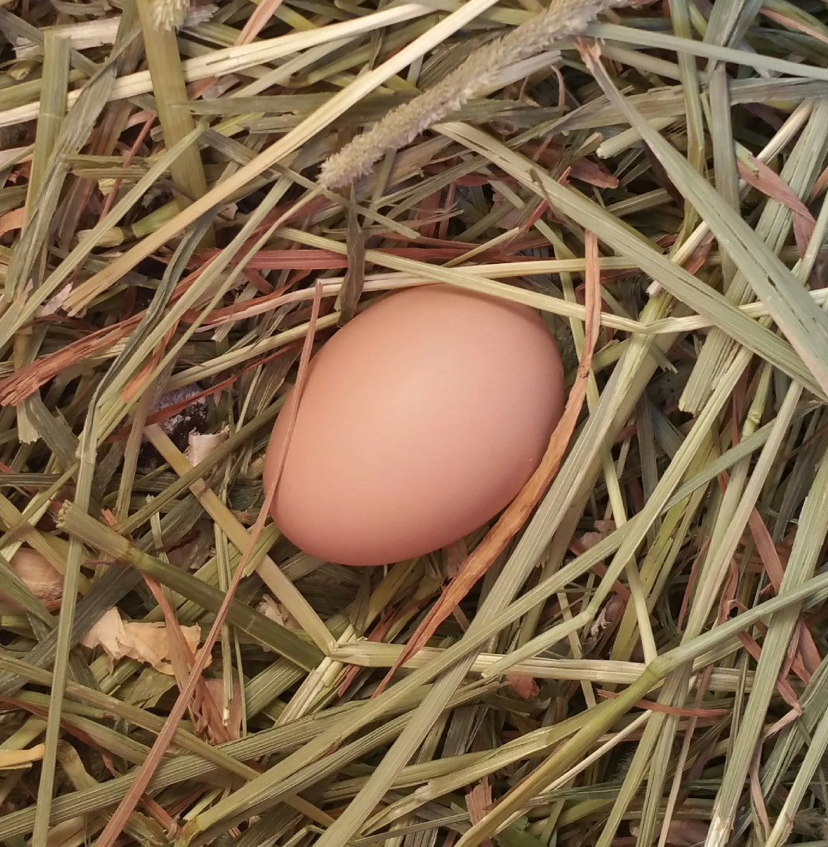 What a pretty egg! I have a batch from McMurray's that are starting to lay. My three white leghorns are all laying and some of the brown and pinkish egg layers. Still waiting for my new EE to start!