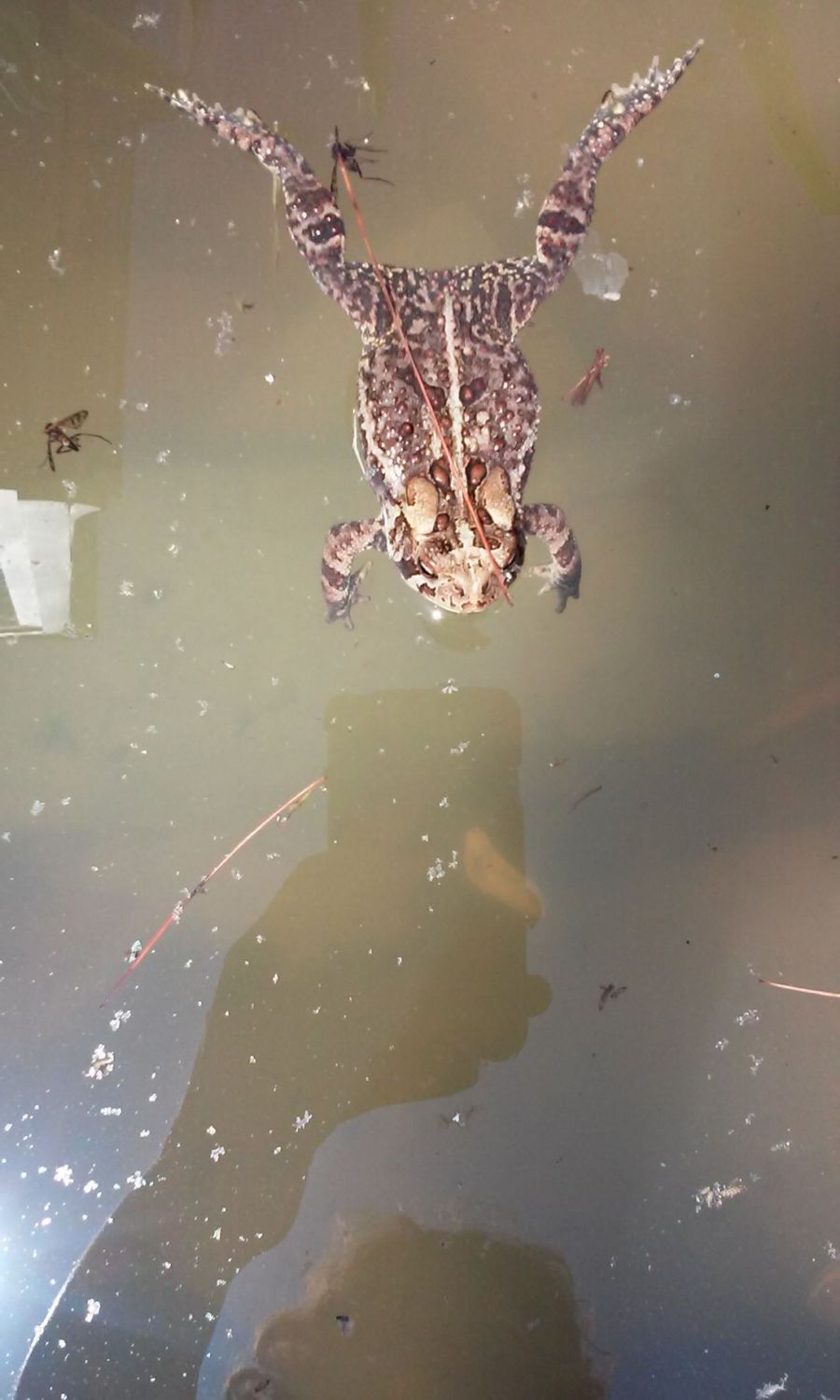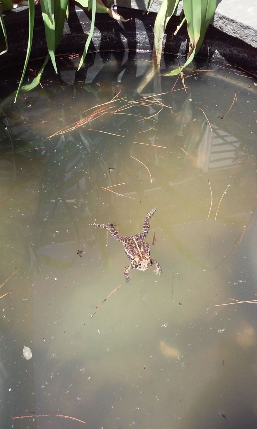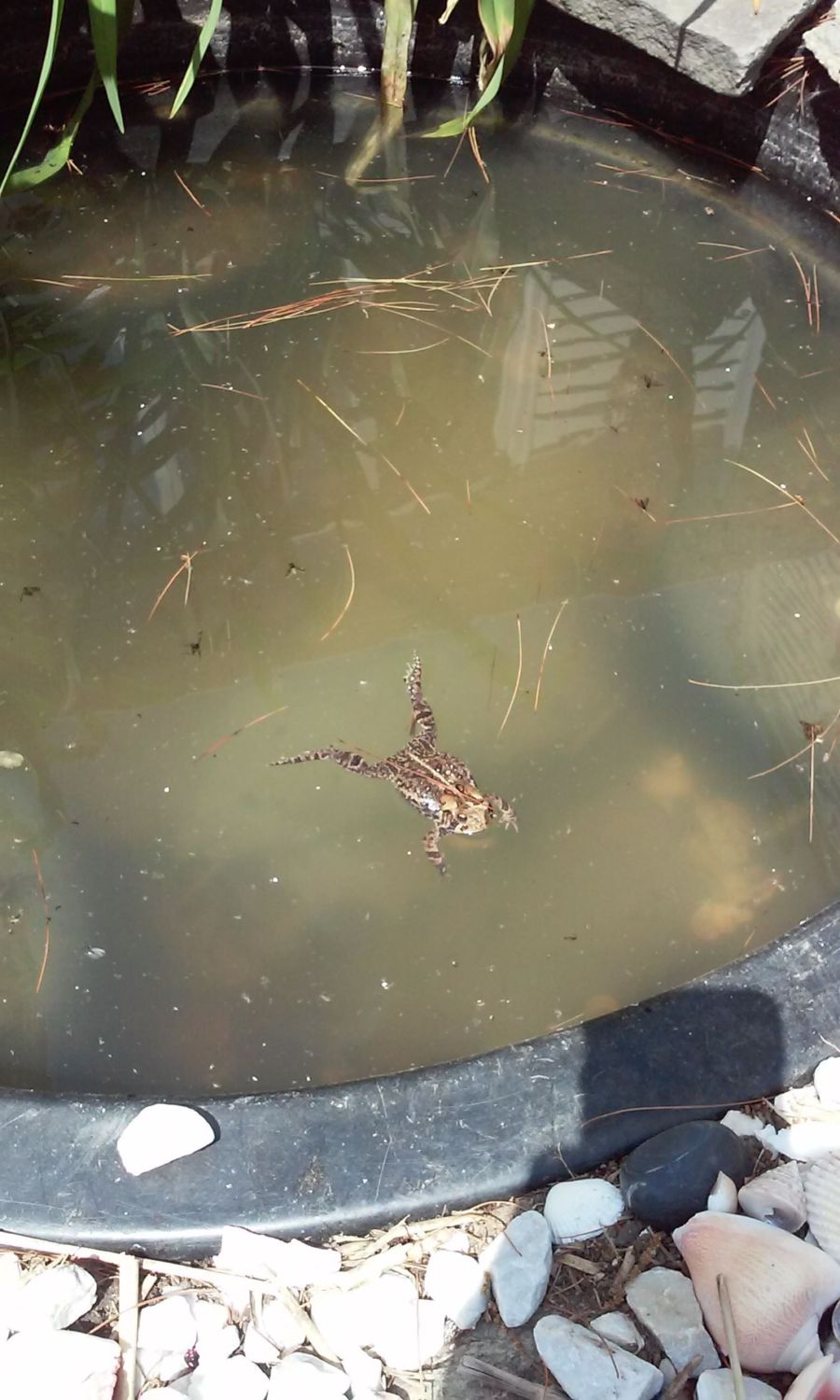 We get alot of those guys too. If you hadle them, you could get warts. It's not a myth, its the truth. I learned it the hard way. If you have em' use duct tape to get em off.Found this little guy in our garden pond today! Pretty sure it's a toad but no clue what species or anything. He also looked like he was having some trouble getting out and kept coming over and trying really hard to get out. Sooo... i helped him! And tried to build a little exit ramp! Lol the one shell floated too so that also works. And I didn't even need to fully net him, just kind of pushed and lifted so the pic with the net is really as far inside as he went so that was goodI think he appreciated it though and he's very docile. I left him alone after this though.![]()