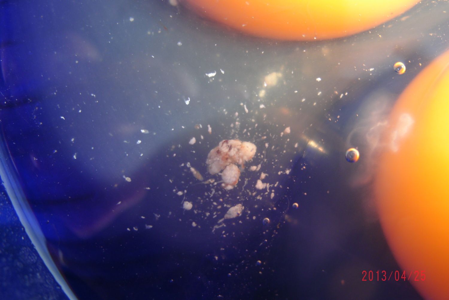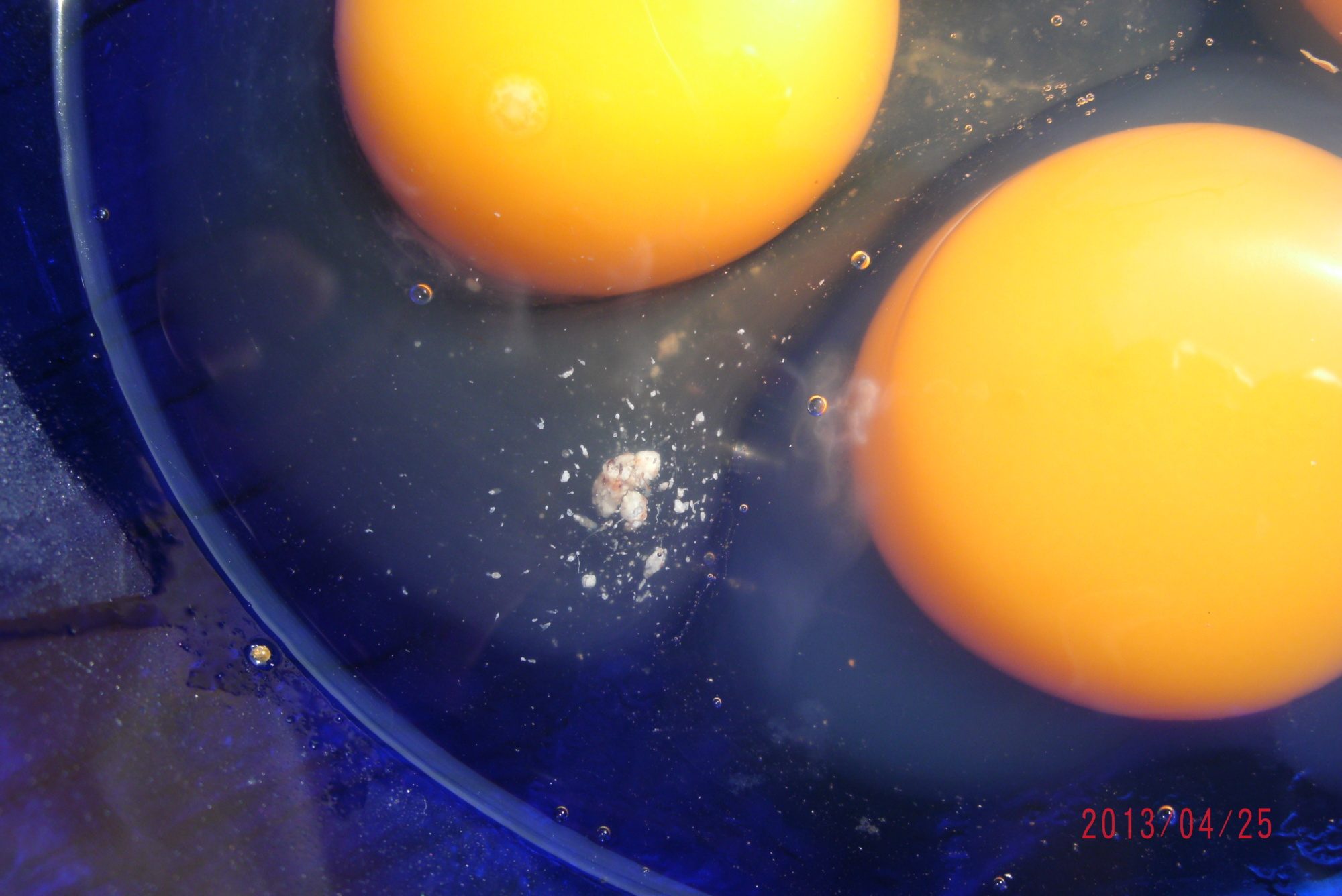 i started to make scrambled eggs the other day and I saw that odd looking stuff in one of the eggs. The eggs where a day or two old.I ended up throwing it out. Any idea what it is and if it is dangerous to the chickens or for the family to eat. Thanks so much