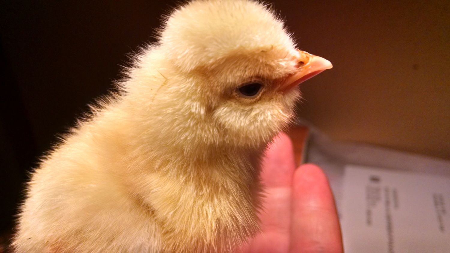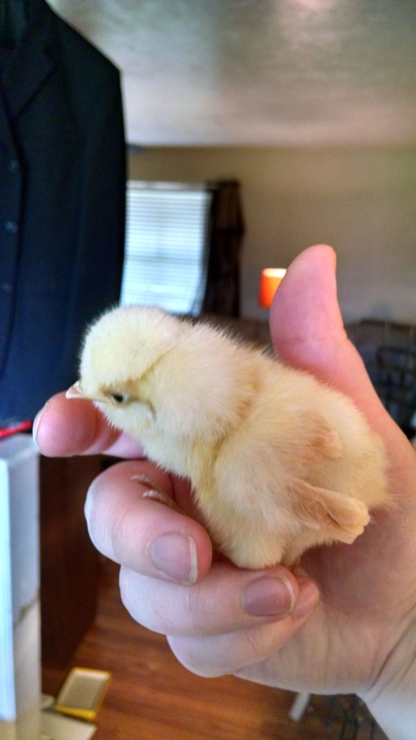 My dark Brahma feathered in very slow also and is still quite a bit smaller at four weeks old then any of my other chicks. Here's an old pic....I FINALLY got my pictures loaded to computer. Here is the free chick that we received. I am thinking a Dark Brahma. What do you think? S/He is a bit smaller than the Buff and Light Brahmas we ordered. But I guess I don't really know what breed s/he is and how big it should be to start comparing it to others.![]()