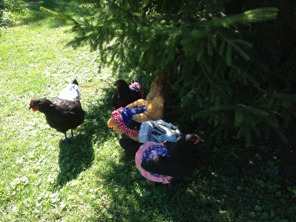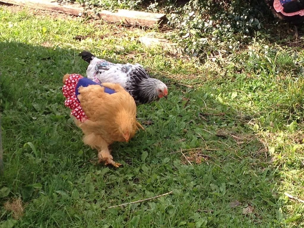 I haven't been on this site in ages but came looking for advice on making a protector for one if my chooks who is barebacked and featherless winged. She is getting very red on the shoulders and wing tips, the summer sun is beginning here and it's burning her. After reading and seeing others jackets I quickly ran up a bikie chick jacket in soft stretchy denim with wing caps. She wasn't keen on having it put on due to her tender skin and jagged feather sheath ends but once on she is very happy.