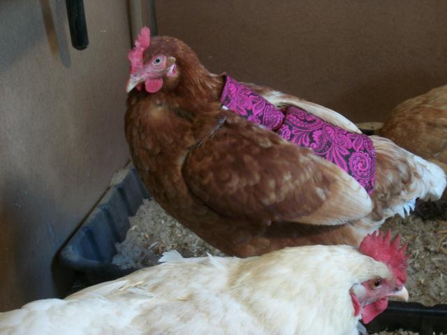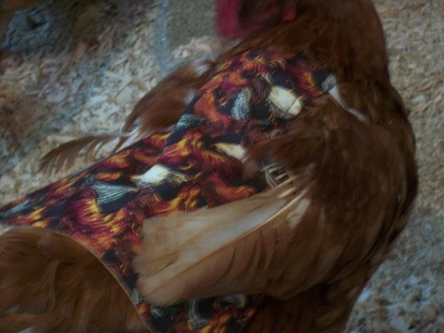 I think it might be a bit large as she has almost no feathers. She is a really heavy and strong hen though. She's queen of the flock and now she has a royal robe to prove it.