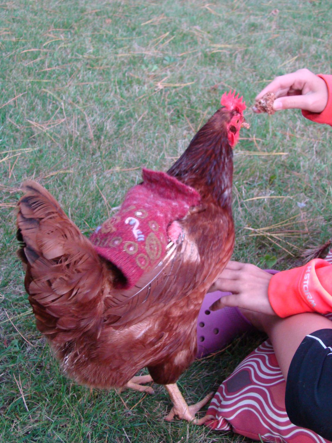 Ostrava, your first time using a sewing machine? I am impressed. I like the design. Any concerns about the straps wrapping around the hens neck?