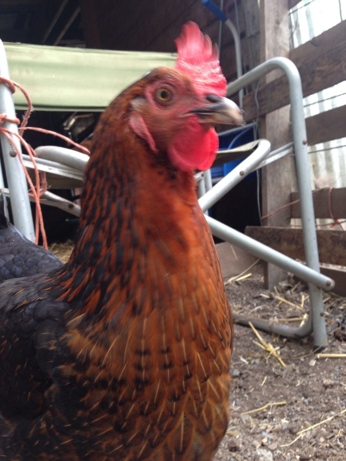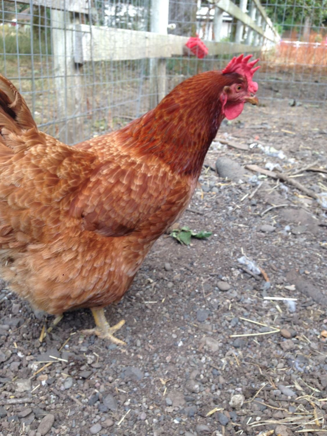 This is my RIR. Very friendly girl. Her name is Candy. | This is one of my black sex links, Sunset. She's a big sweetheart.