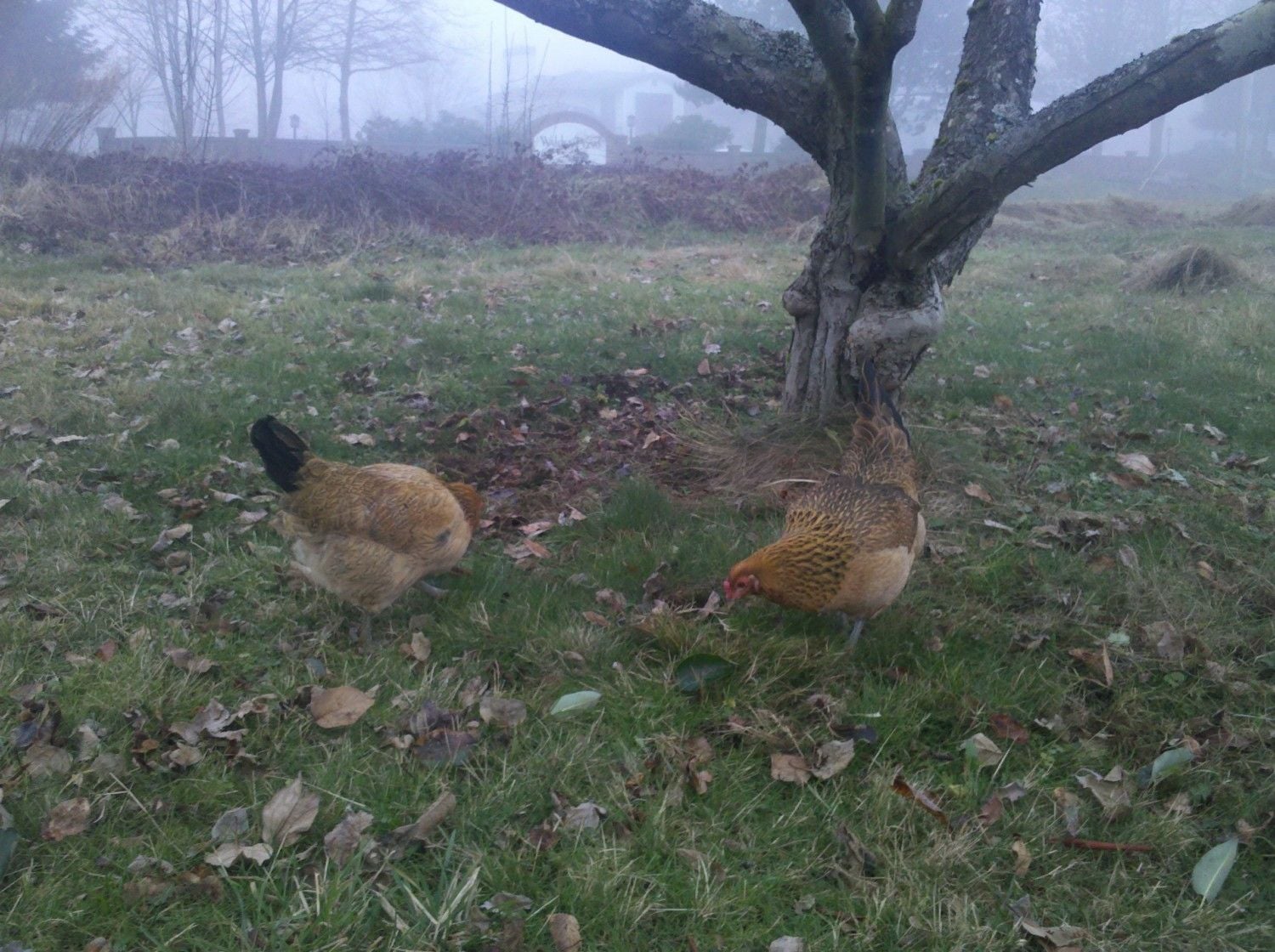 There are times when it's handy to free range and times when it's not. I'm really new to this and a old lazy gardener so I'm employing my girls as general rototillers and organic pest control for a fruit & berry crop. When there is no crop waiting for harvest on the vine I'm free ranging 2 birds on a 1/2 acre. I'm throwing scratch grains under my vineyard and my fruit trees and the girls are tilling things up a bit faster than expected. Still there is lots of work for them to do. I'm working them the hardest under my apple tree. Been having trouble with apple maggots. Later this year when I have a crop on the vine they will move into a chicken tractor so they don't get my harvest though I will share some of the berries with them as "Payment for services rendered". In the mean time my wife just got her 2nd egg this morning. They lay "Pretty blue ones!" her words. I don't care that much for eggs till you do something more interesting with them than a plain egg on a plate.