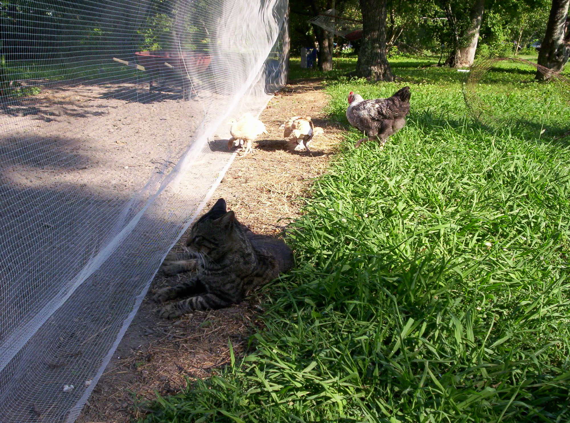 IME a cat raised around poultry seems to understand that they are off-limits as prey. Cats are indivuals, so I know that comment isn't gonna cover all cats in all situations. Obviously, chicks are more vulnerable, but I have never had one of MY cats try to harm any poultry, including chickens, ducks, quail, turkeys, and guineas. The cats wouldn't even harm a baby rabbit that got out of the cage, though kits are surely the size and scent of prey to a cat. I really think the cats key off of their owner to see what is acceptable prey and what is not.