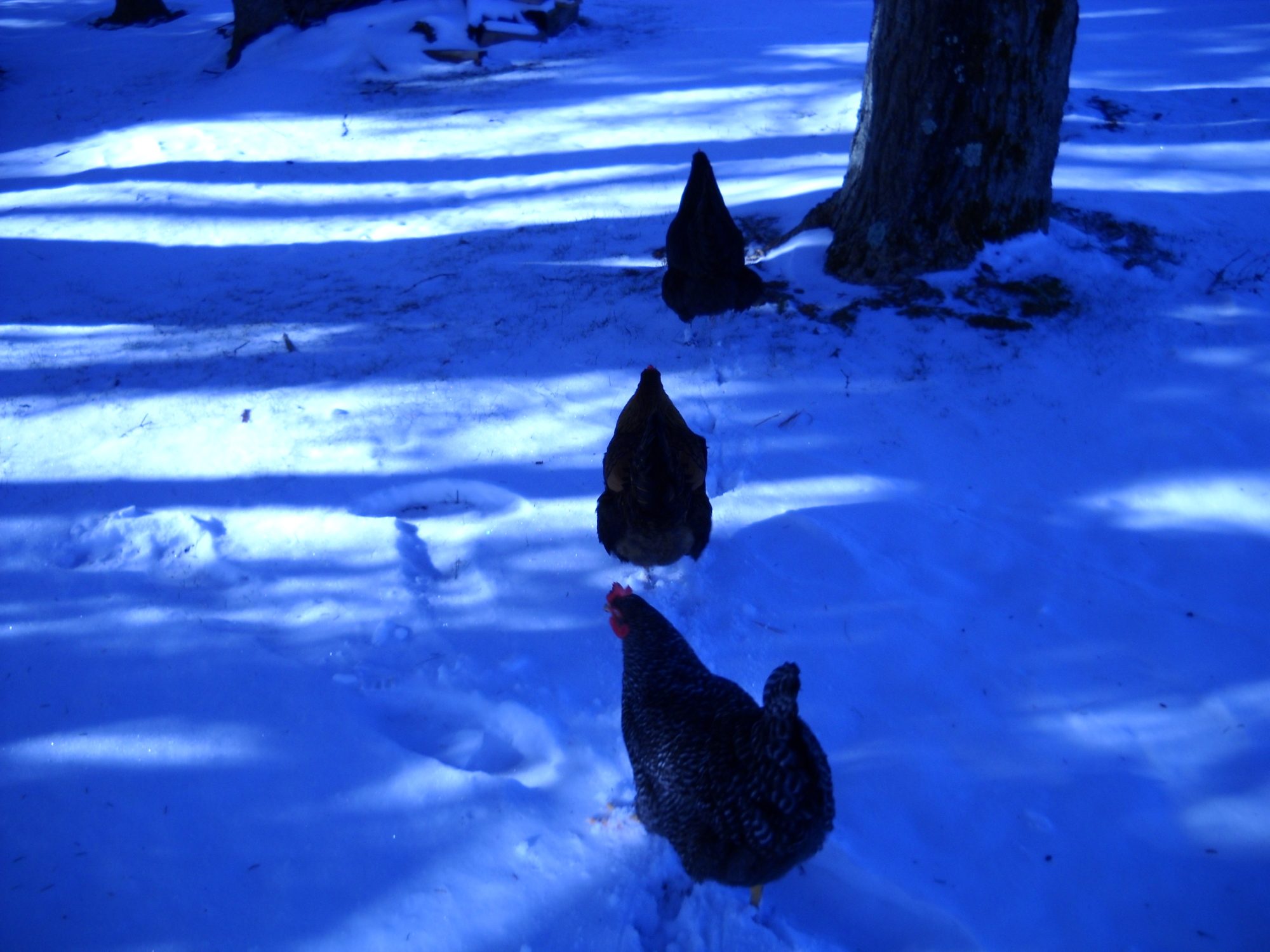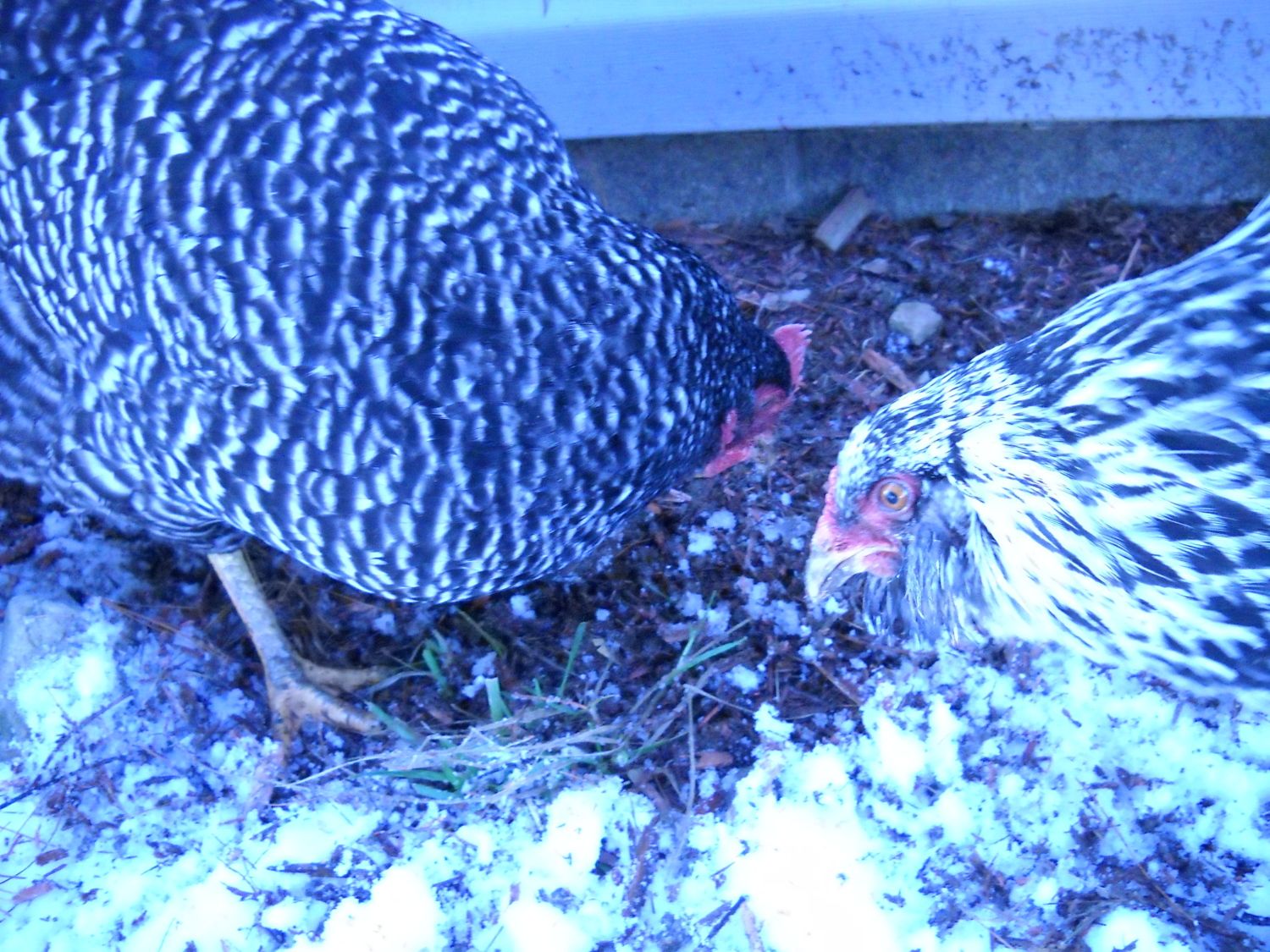 During winter months I change feed so it is made to a large degree of large particulates that hold up better on snow. This is possible since flock is made up largely of mature birds. For layers, the formulated diet is applied as pellets which is supplemented with intact grains like corn, sunflower, oats and millet. Additionally I make certain they have access to edible plant materials (if need be hays). With such a mix of eats greater effort is made to ensure birds have all the grit they need for processing the tougher foods.