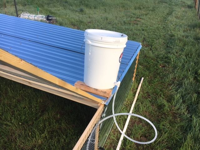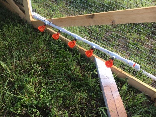 Here is the waterer I built. I spent a decent amount of time researching waterers of all things. The bell waterers were all $40+ and I just hated to spend the money. This set up cost me about 25 bucks. It's gravity fed from a 5 gallon bucket up top.